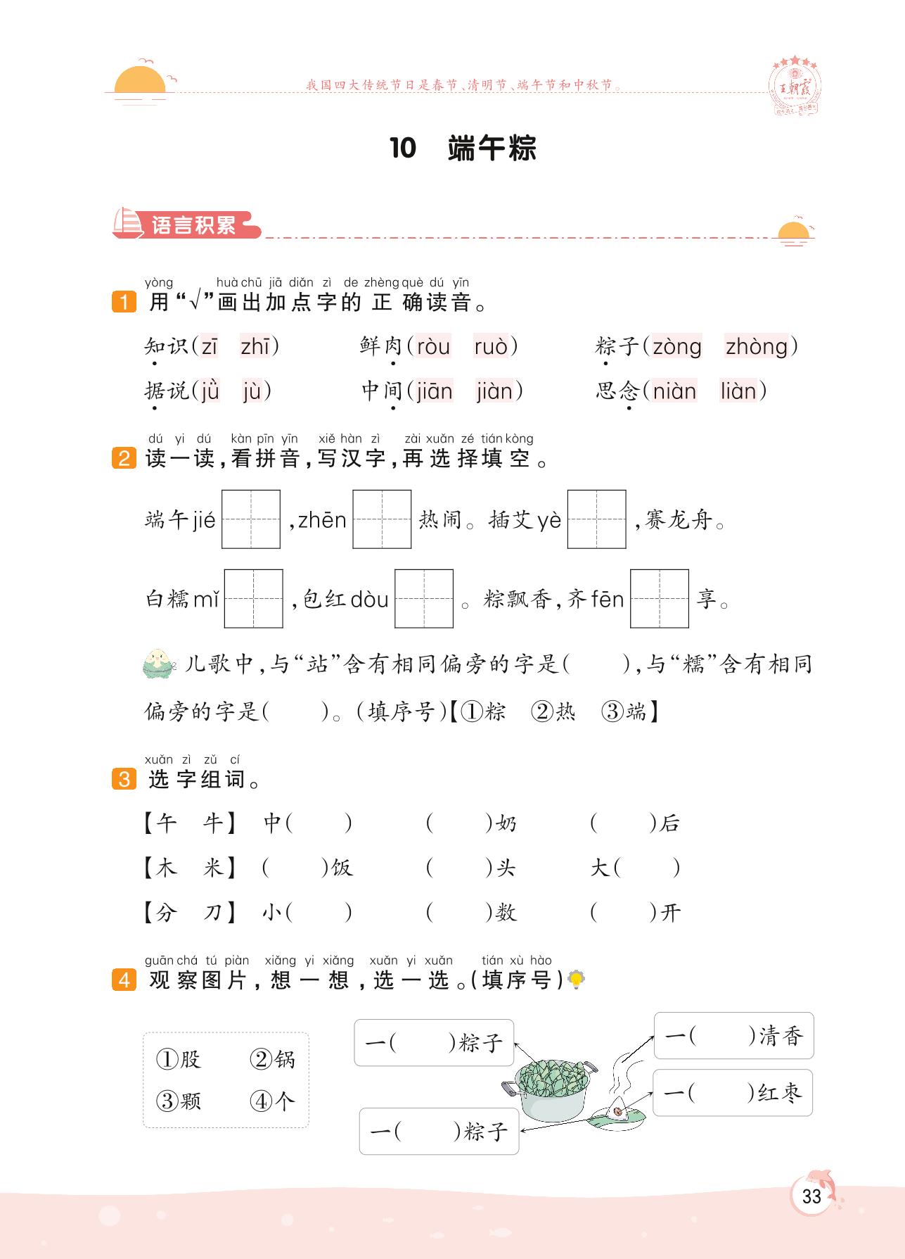 2022下册一年级语文人教版 第四单元 家人——10 端午粽