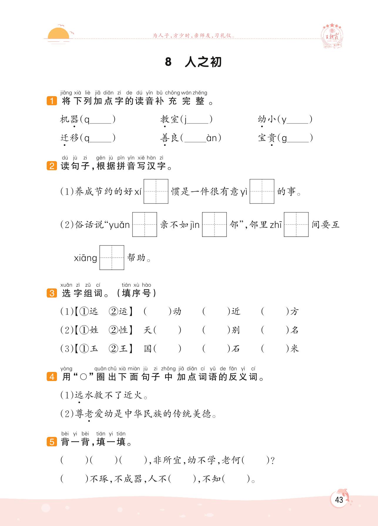 2022下册一年级语文人教版 第五单元 识字——8 人之初