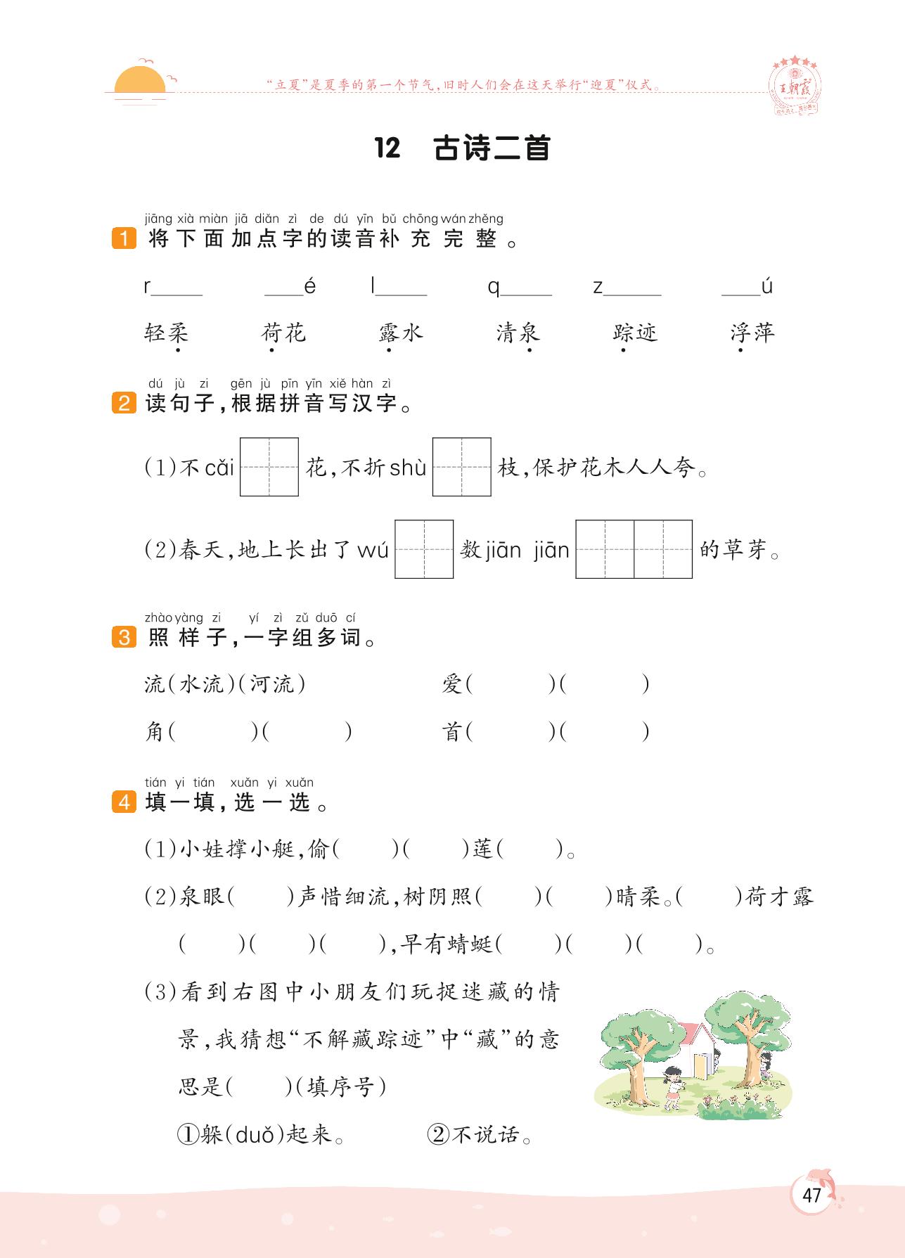 2022下册一年级语文人教版 第六单元 夏天——12 古诗二首