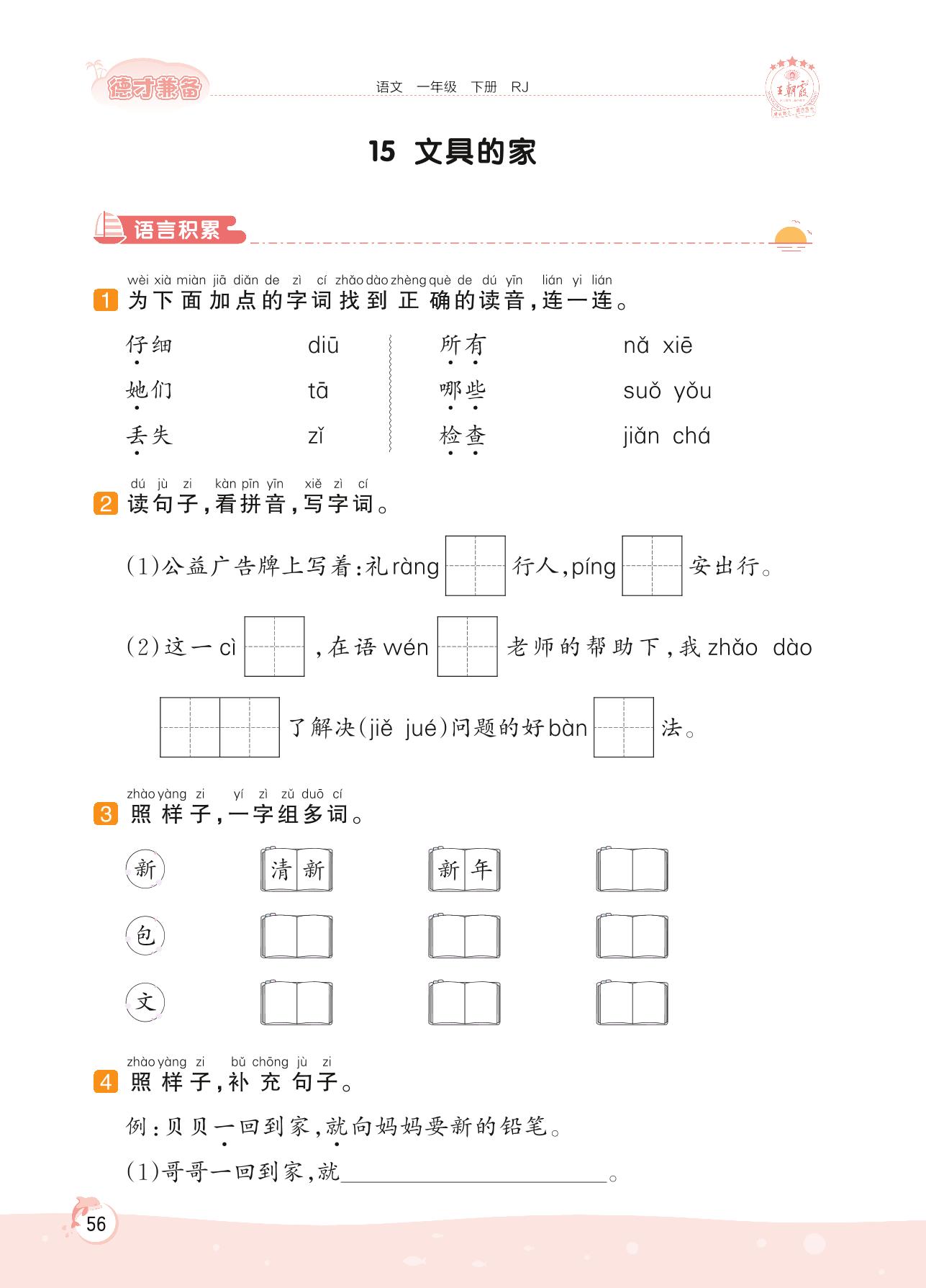 2022下册一年级语文人教版 第七单元 习惯——15 文具的家
