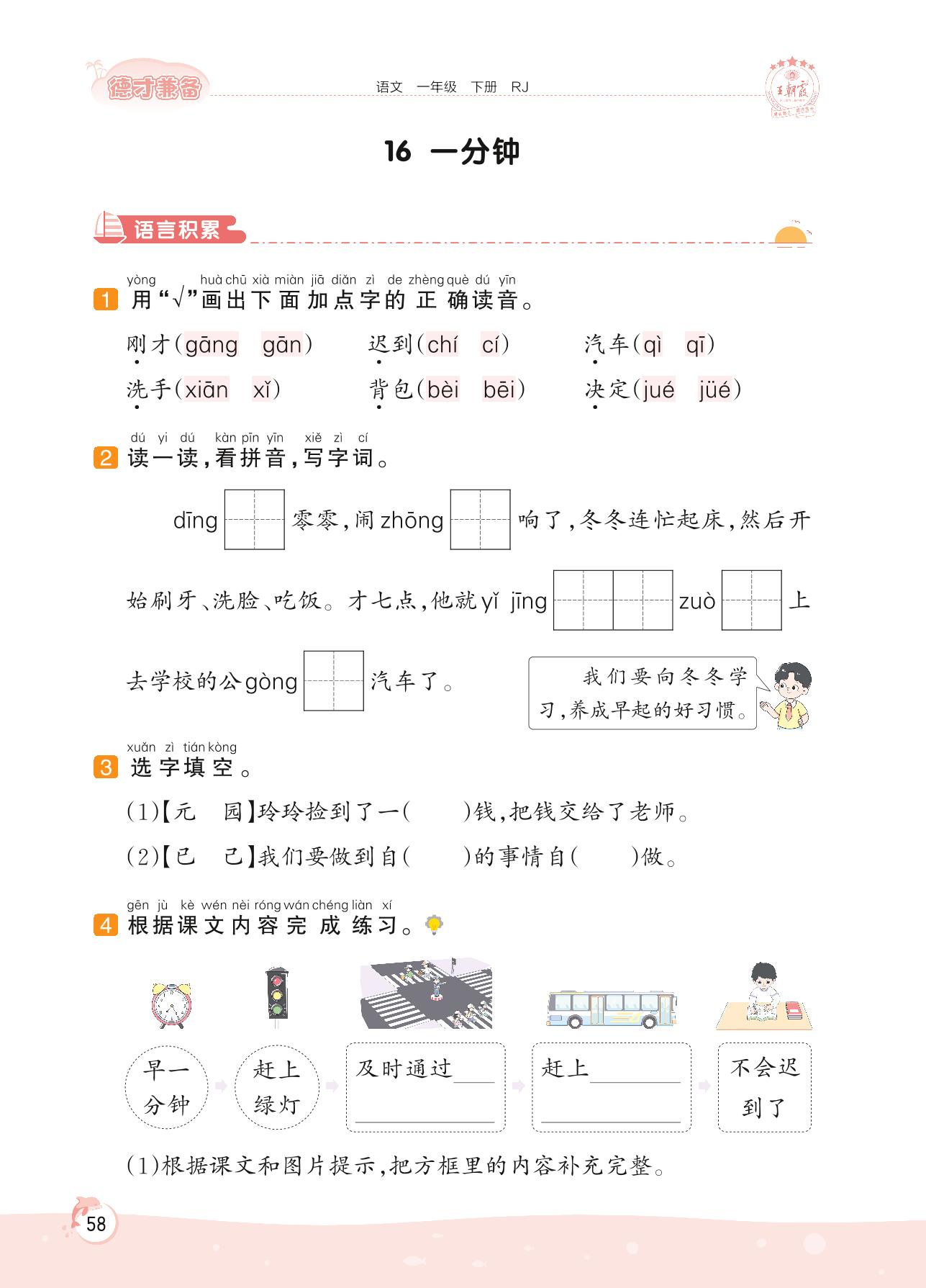 2022下册一年级语文人教版 第七单元 习惯——16 一分钟