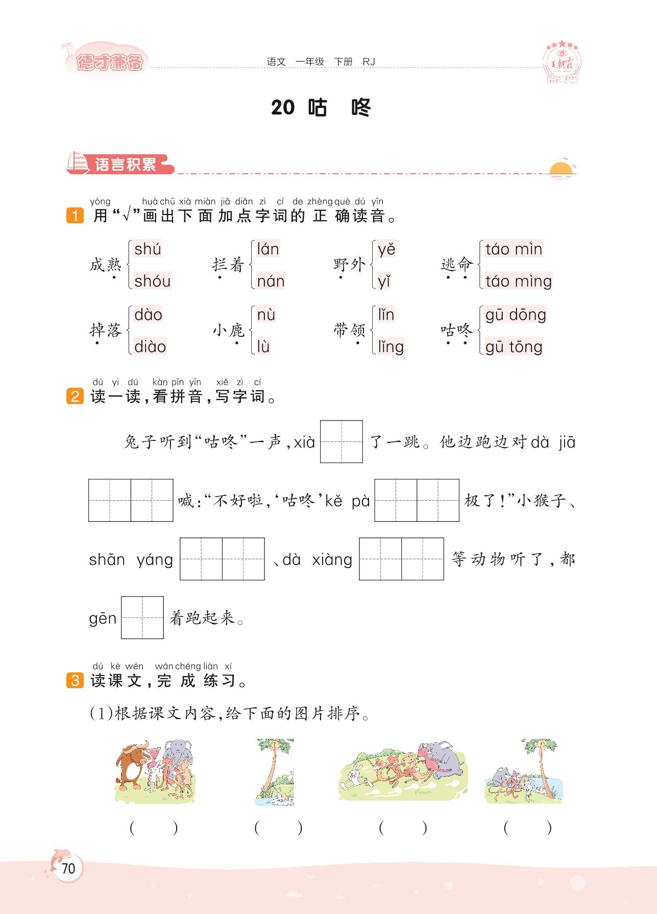 2022下册一年级语文人教版 第八单元 问号——20 咕咚