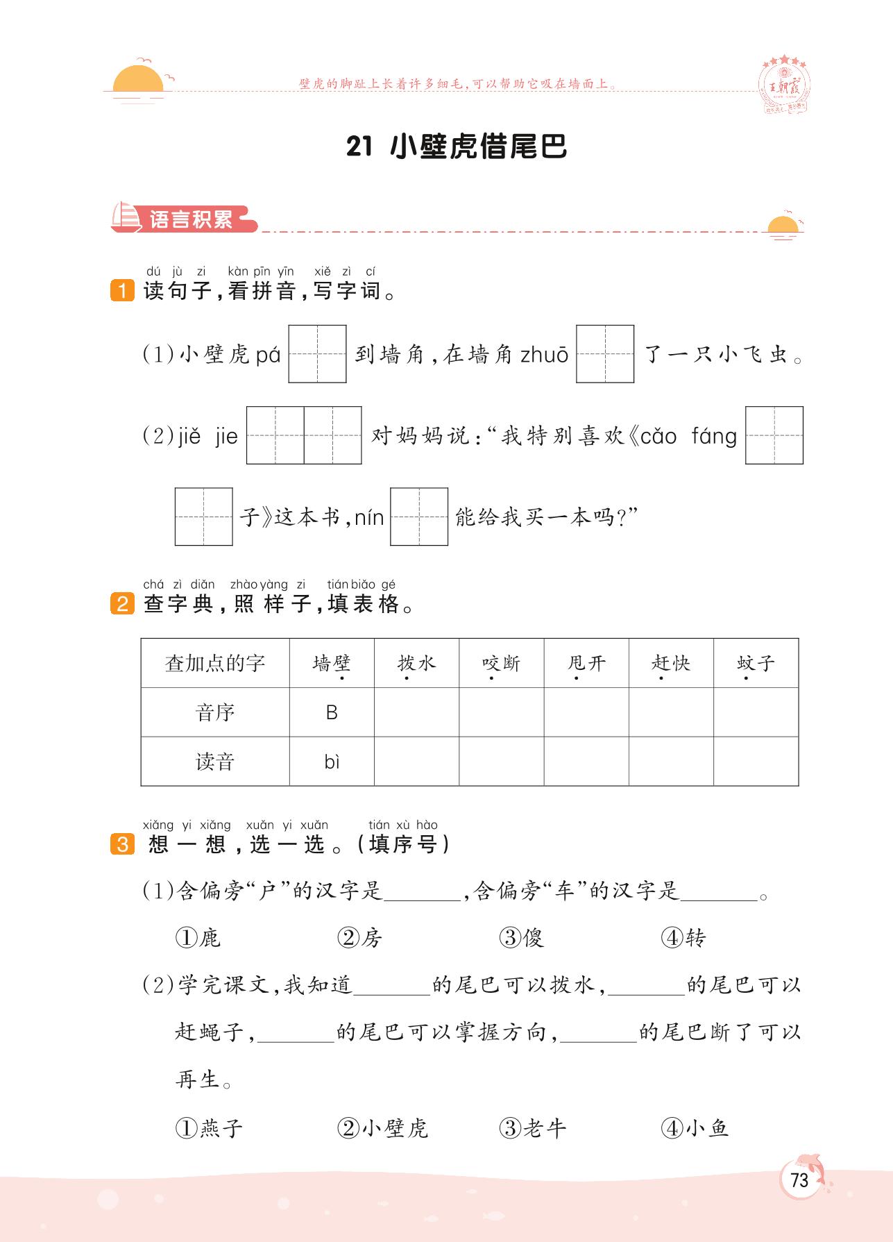 2022下册一年级语文人教版 第八单元 问号——21 小壁虎借尾巴