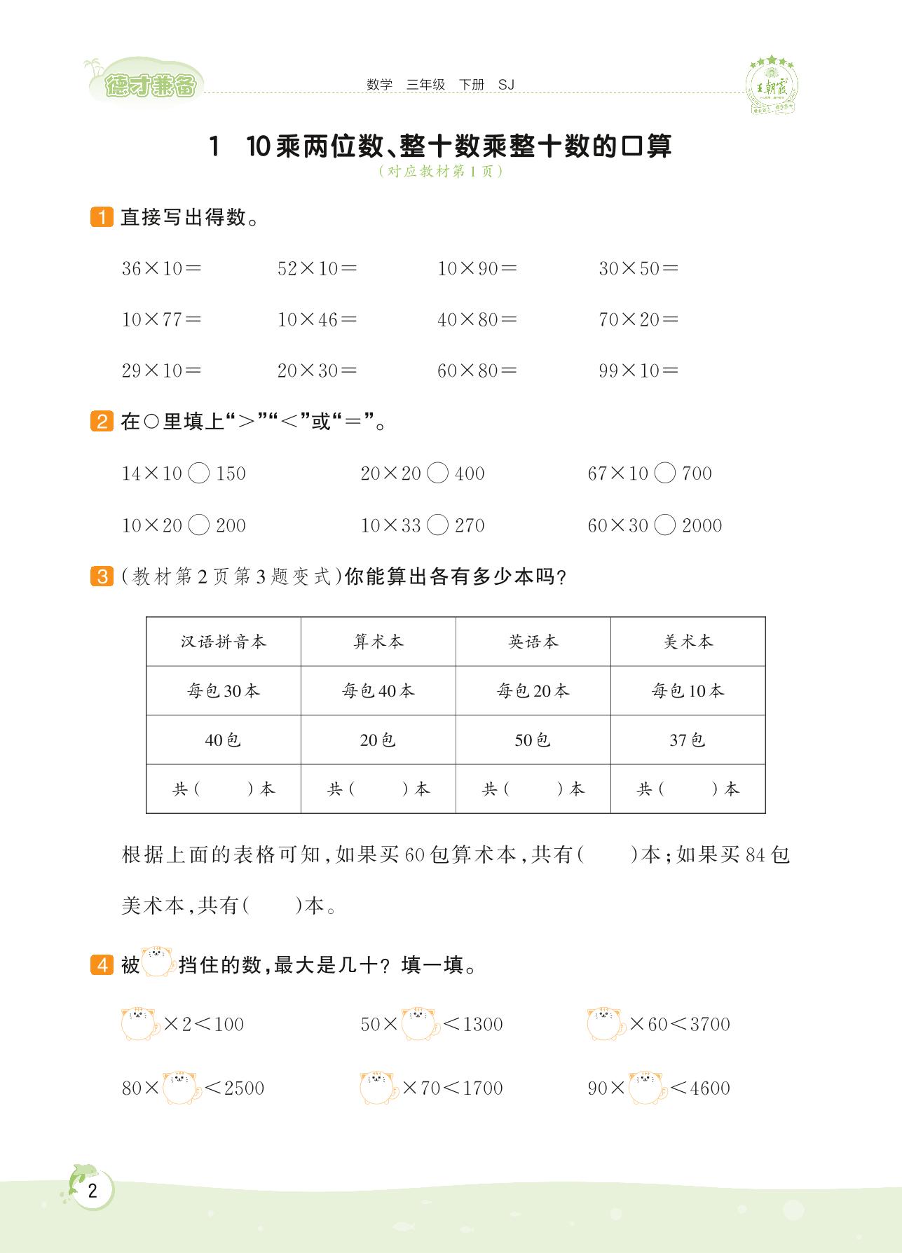 2022下册三年级数学苏教版 第一单元——1 10乘两位数、整十数乘整十数的口算