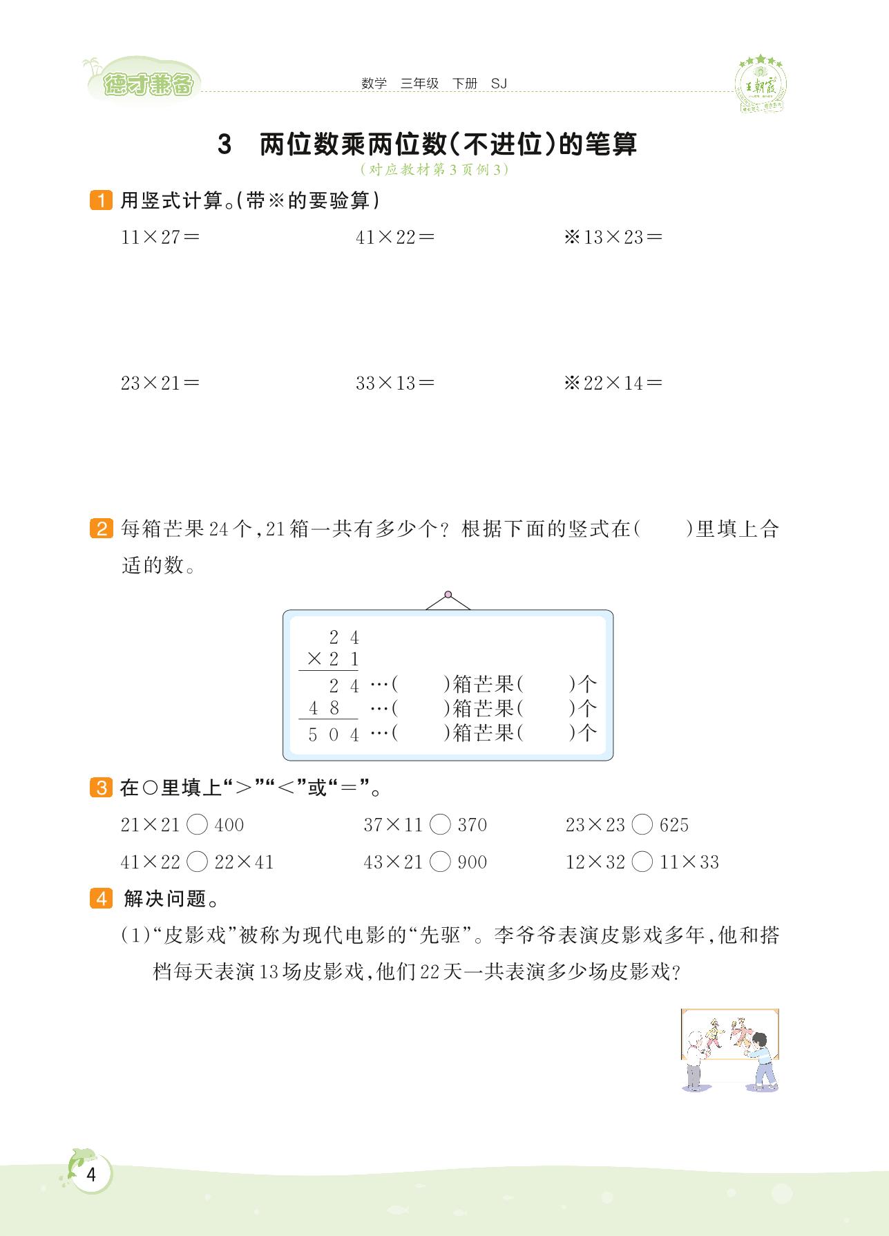 2022下册三年级数学苏教版 第一单元——3 两位数乘两位数(不进位)的笔算