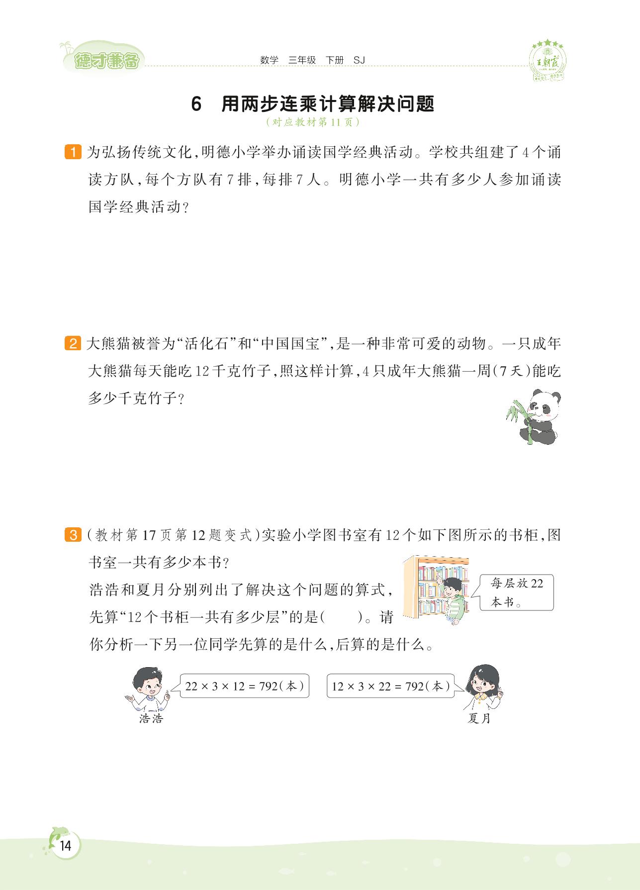 2022下册三年级数学苏教版 第一单元——6 用两步连乘计算解决问题