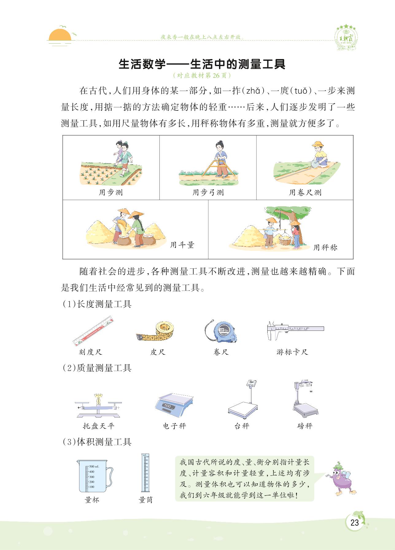 2022下册三年级数学苏教版 第二单元——生活数学 生活中的测量工具