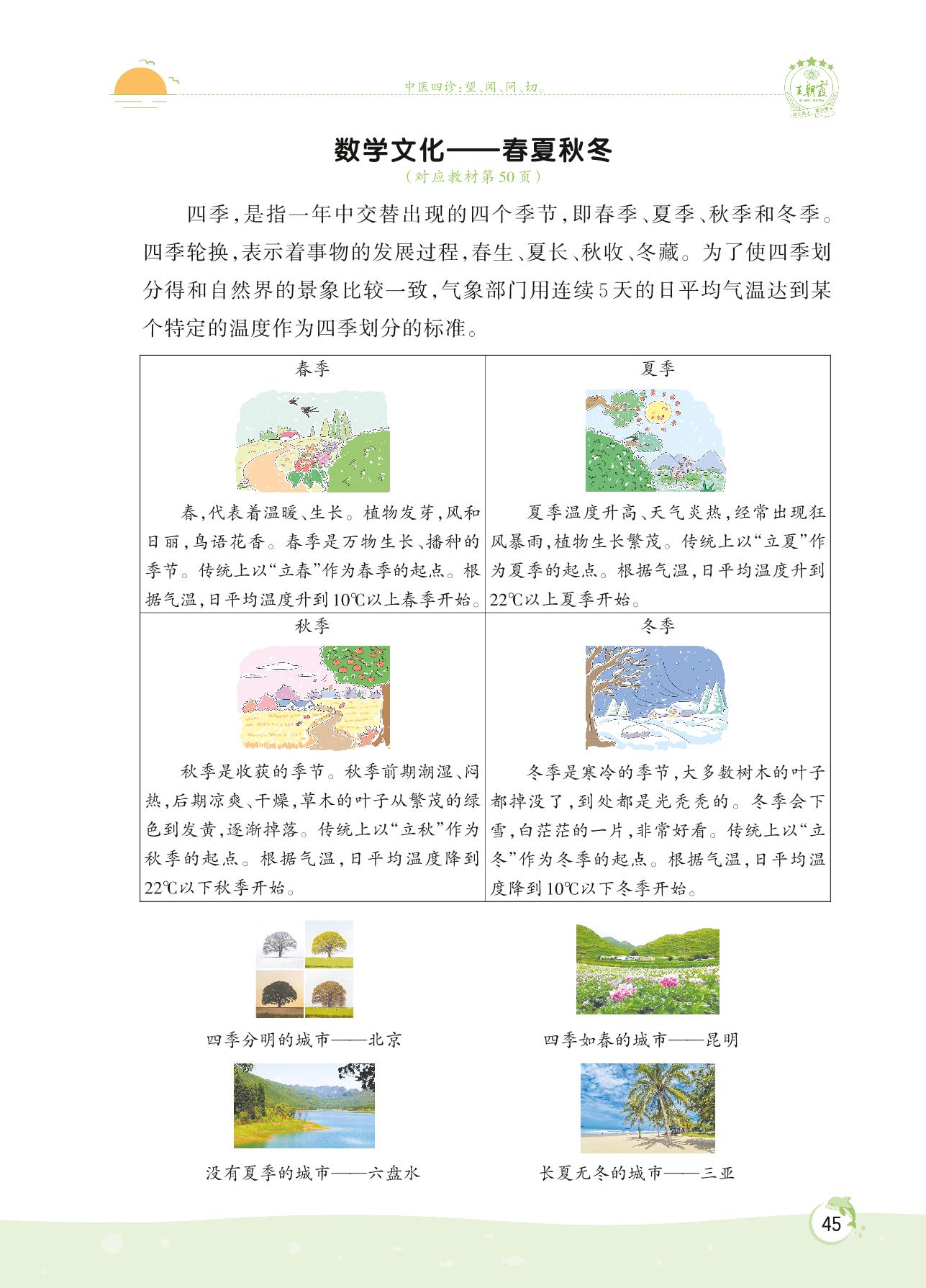 2022下册三年级数学苏教版 第五单元——数学文化 春夏秋冬