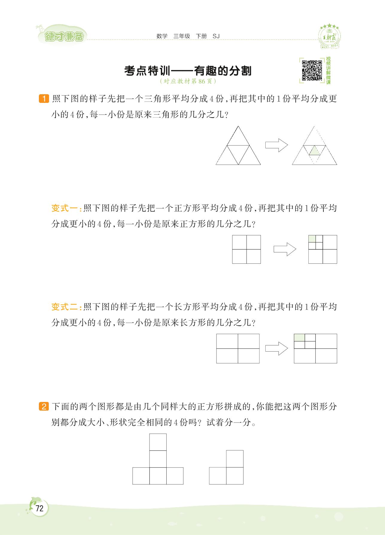2022下册三年级数学苏教版 第七单元——考点特训 有趣的分割