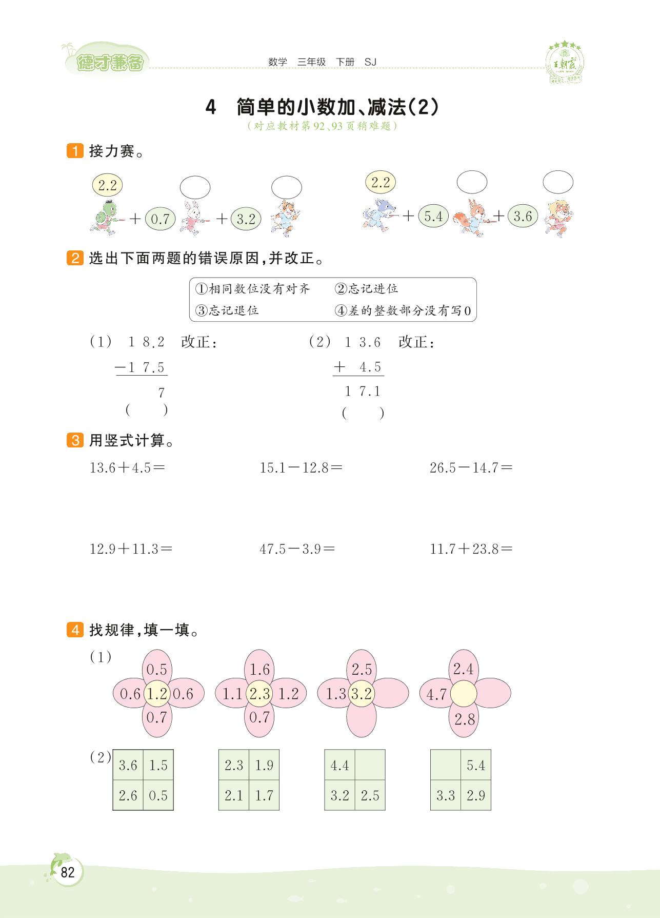2022下册三年级数学苏教版 第八单元——4 简单的小数加、减法(2)