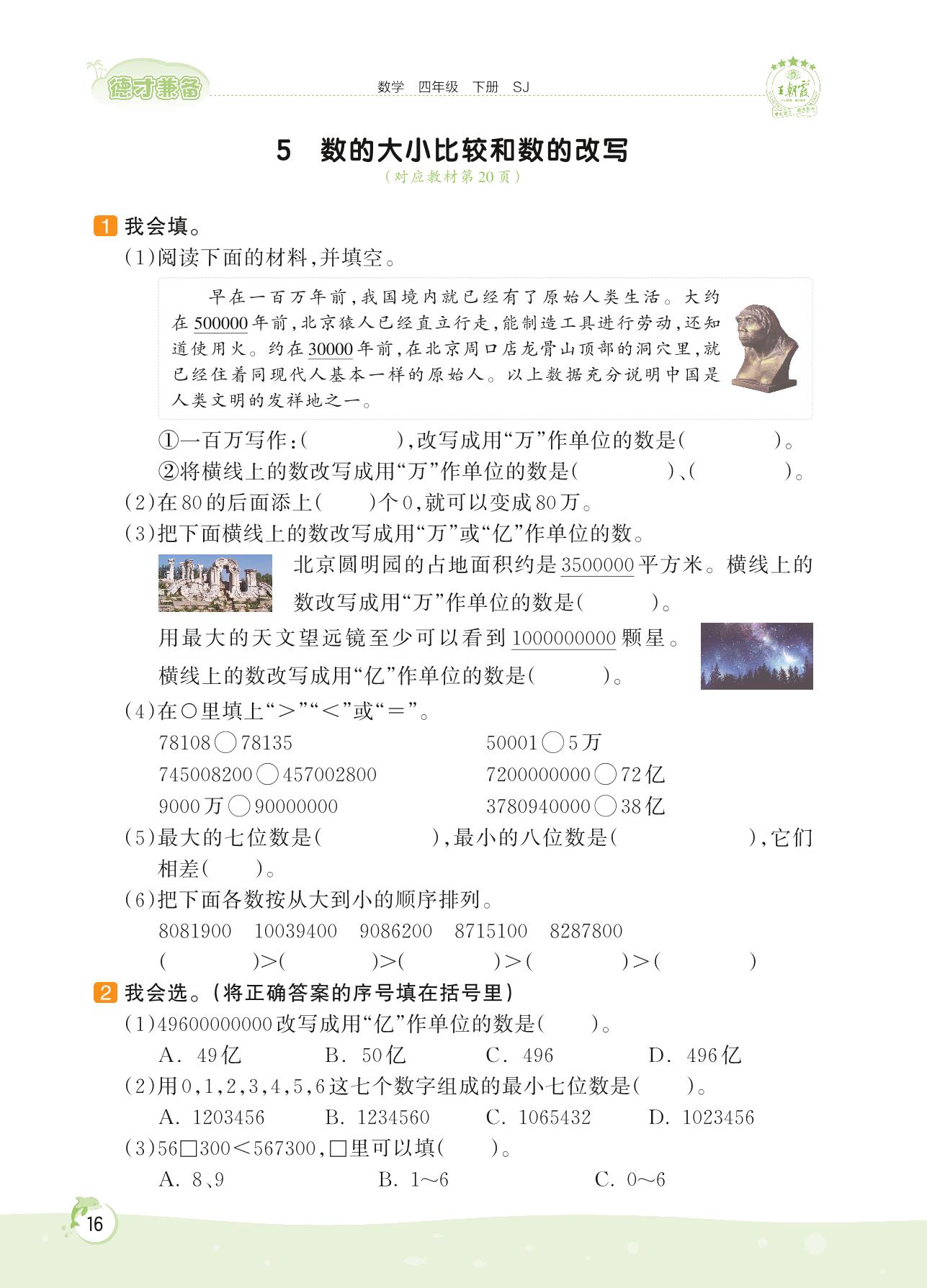 2022下册四年级数学苏教版 第二单元——5 数的大小比较和数的改写
