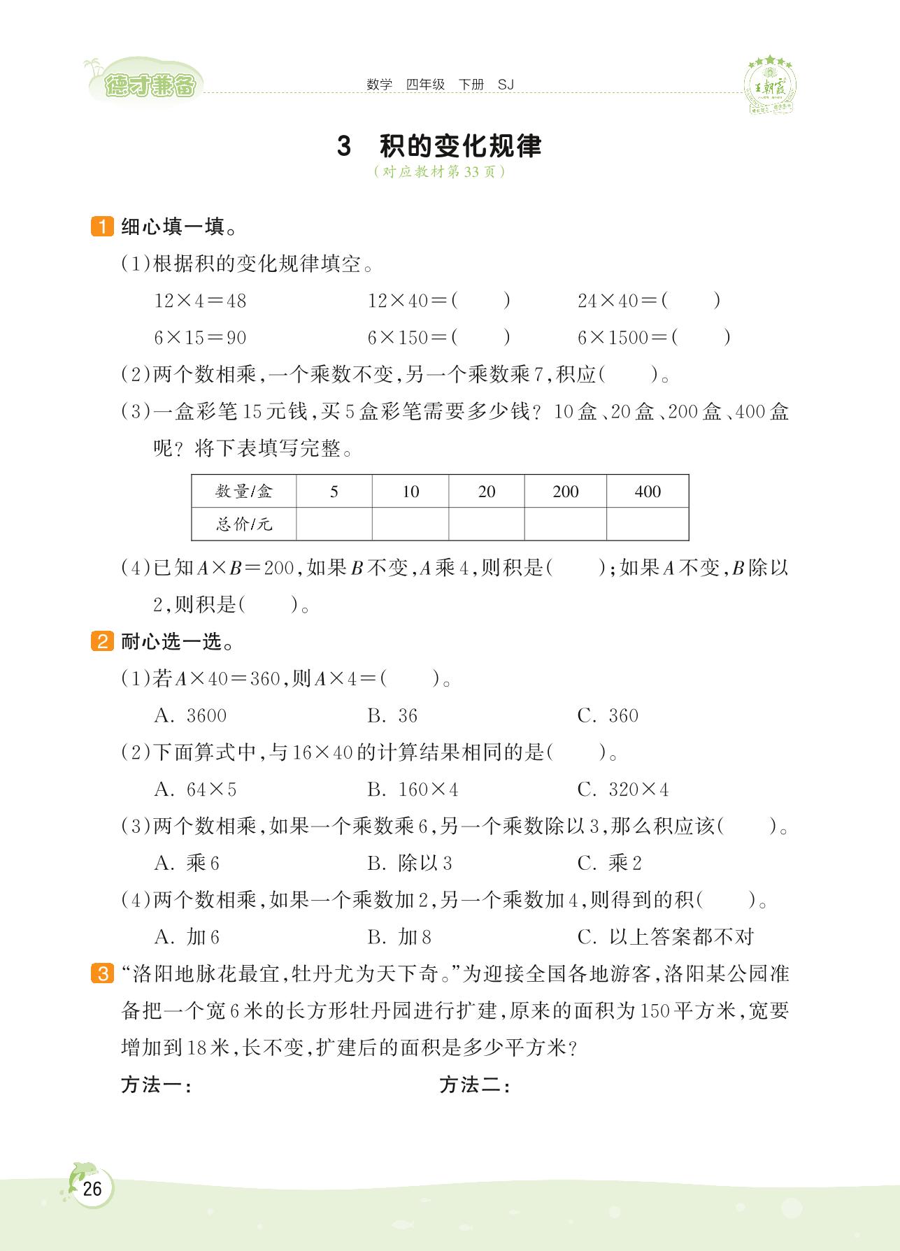 2022下册四年级数学苏教版 第三单元——3 积的变化规律