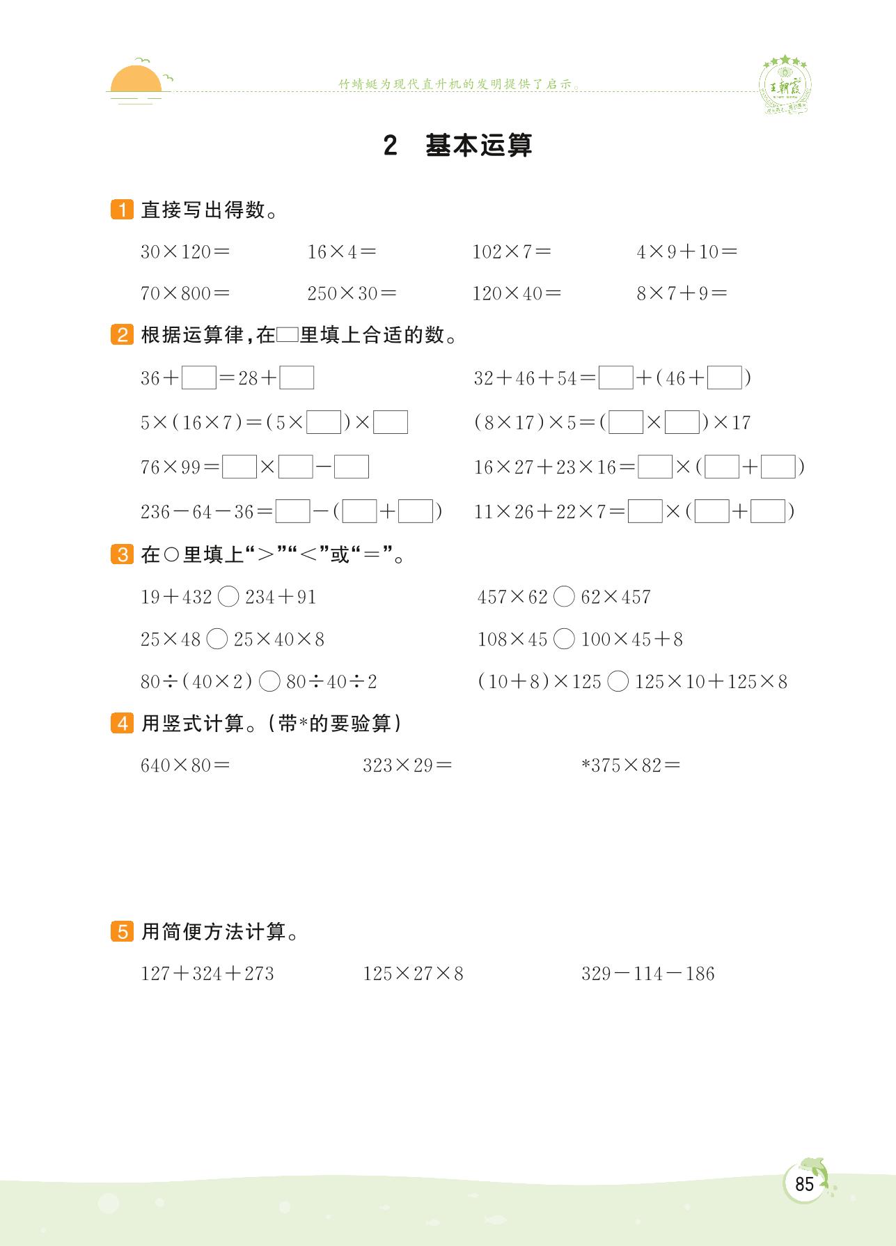2022下册四年级数学苏教版 第九单元——2 基本运算