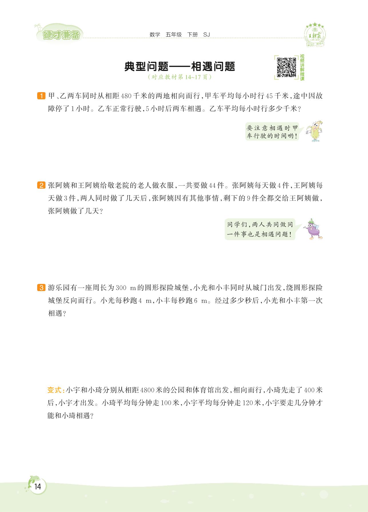 2022下册五年级数学苏教版 第一单元——典型问题 相遇问题