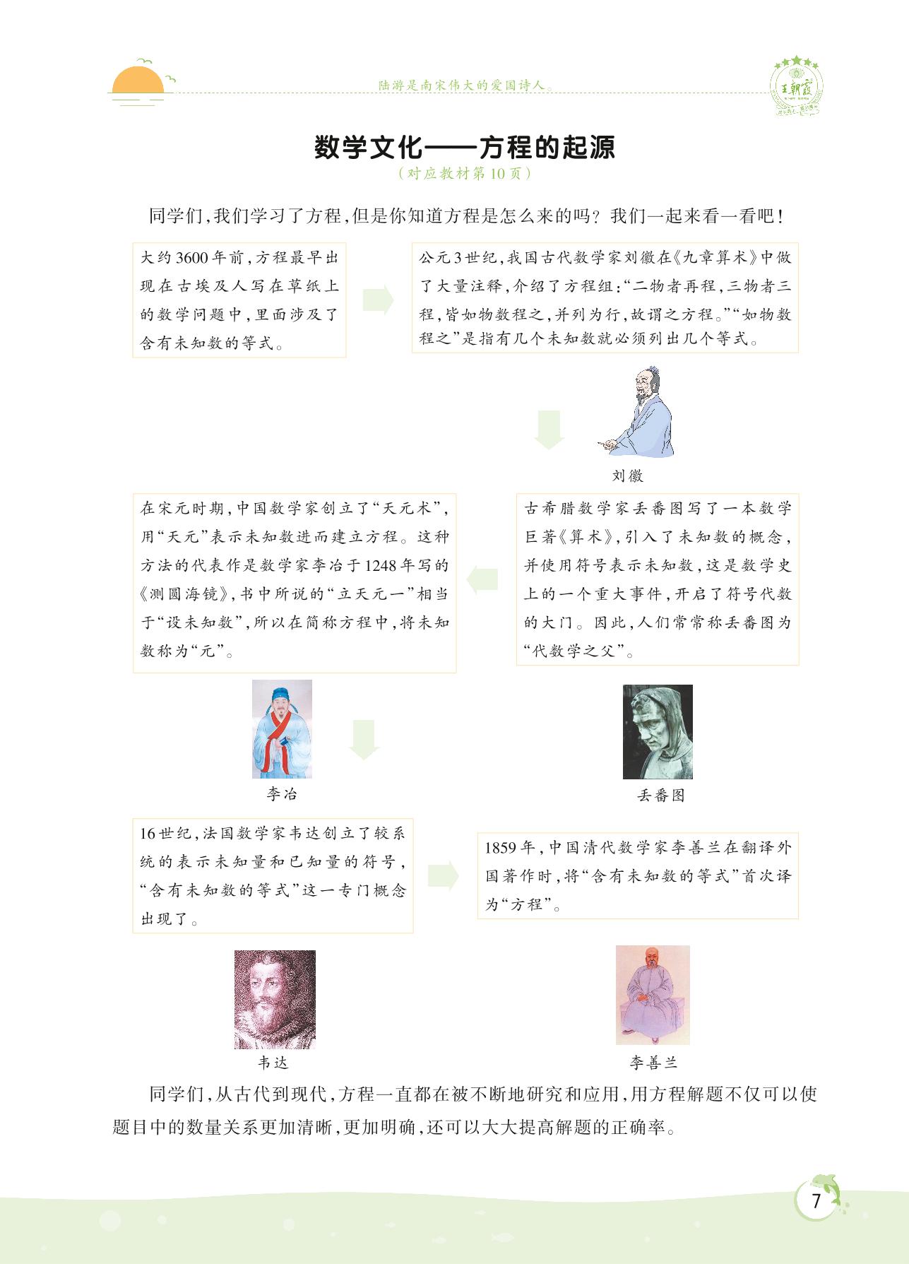 2022下册五年级数学苏教版 第一单元——数学文化 方程的起源