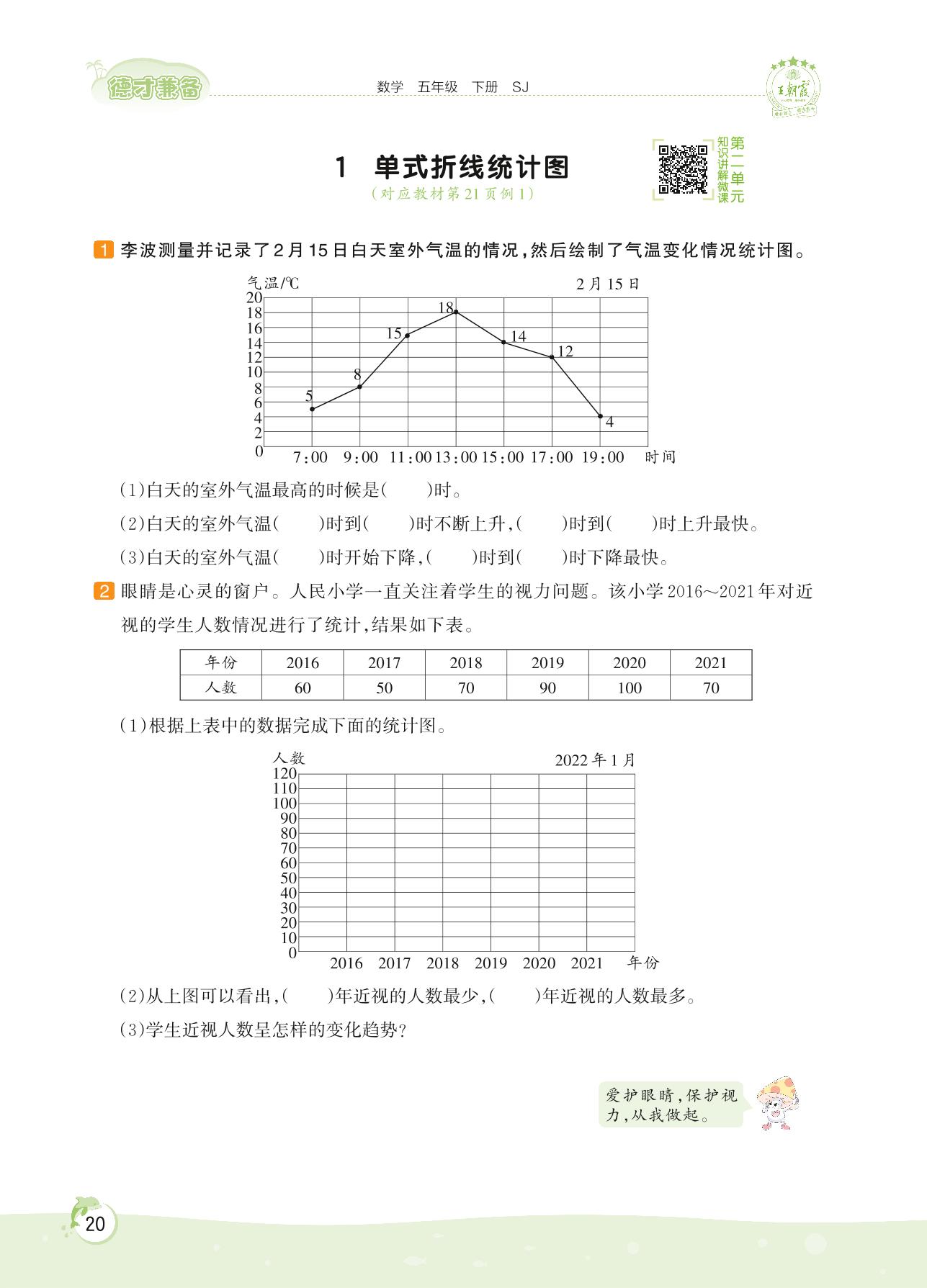 2022下册五年级数学苏教版 第二单元——1 单式折线统计图
