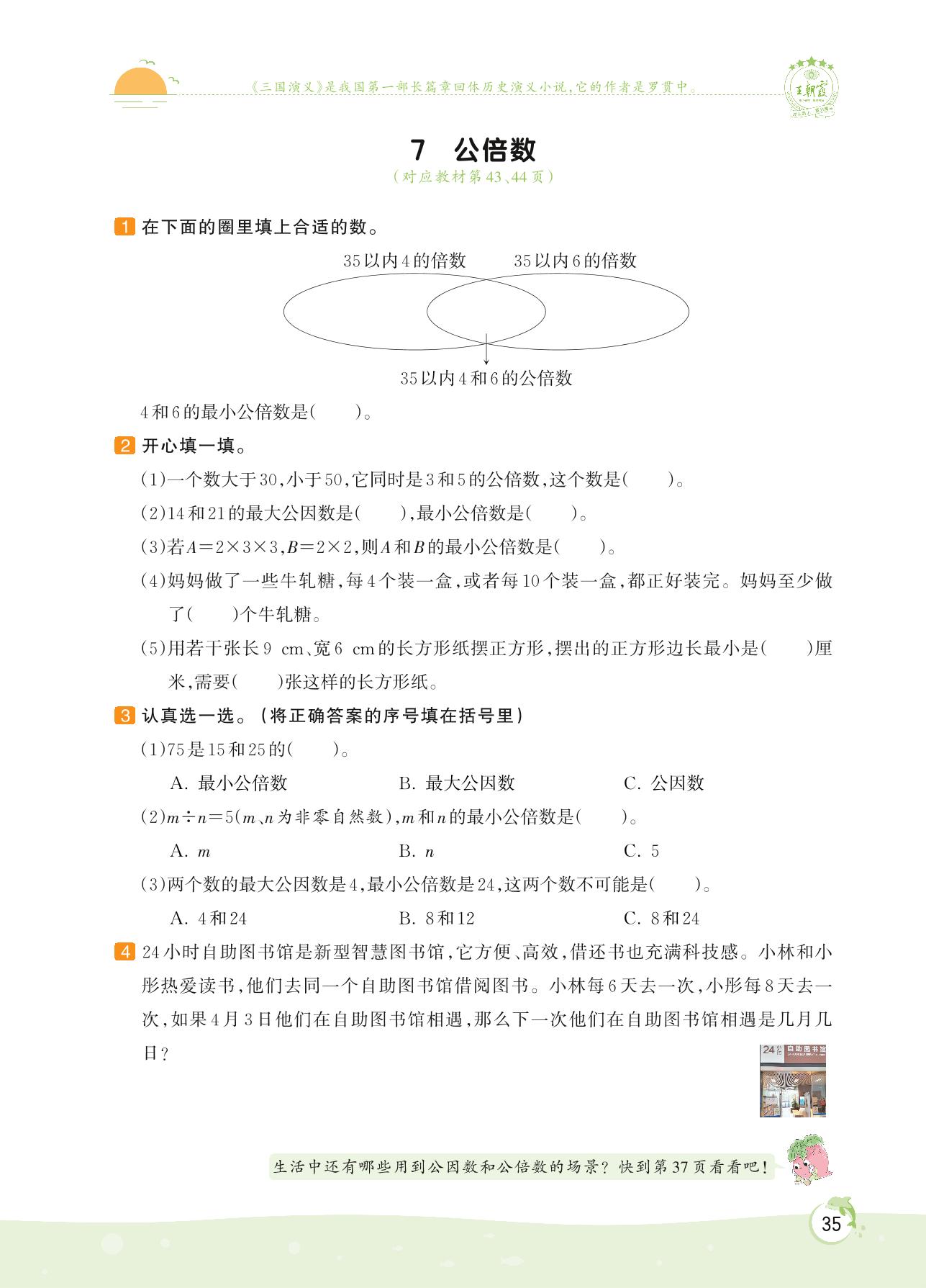 2022下册五年级数学苏教版 第三单元——7 公倍数