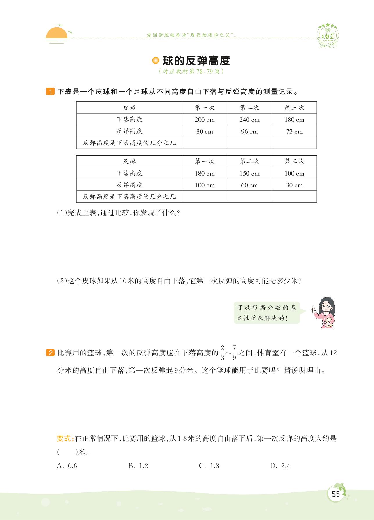 2022下册五年级数学苏教版 第四单元——球的反弹高度