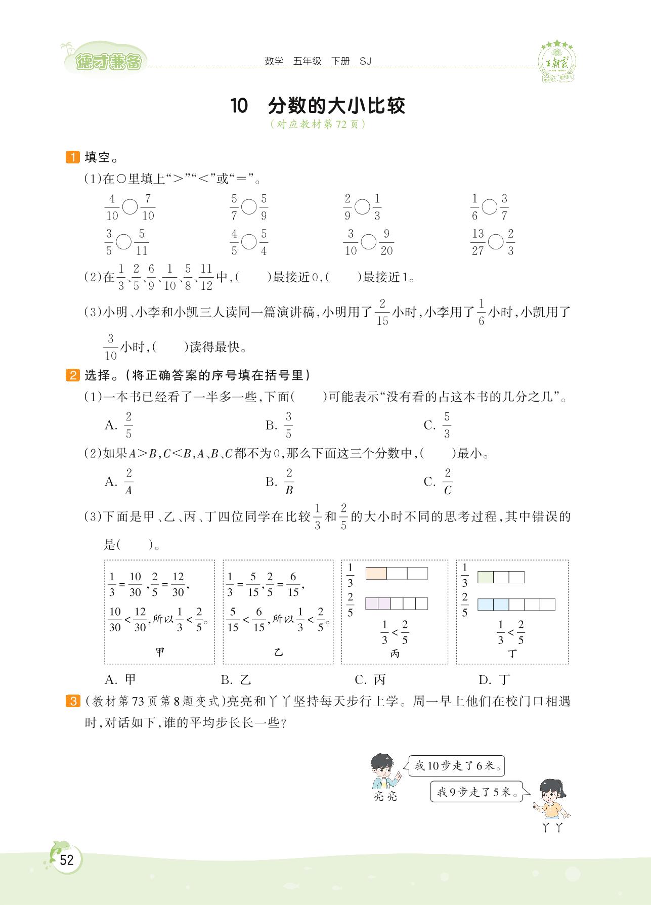 2022下册五年级数学苏教版 第四单元——10 分数的大小比较