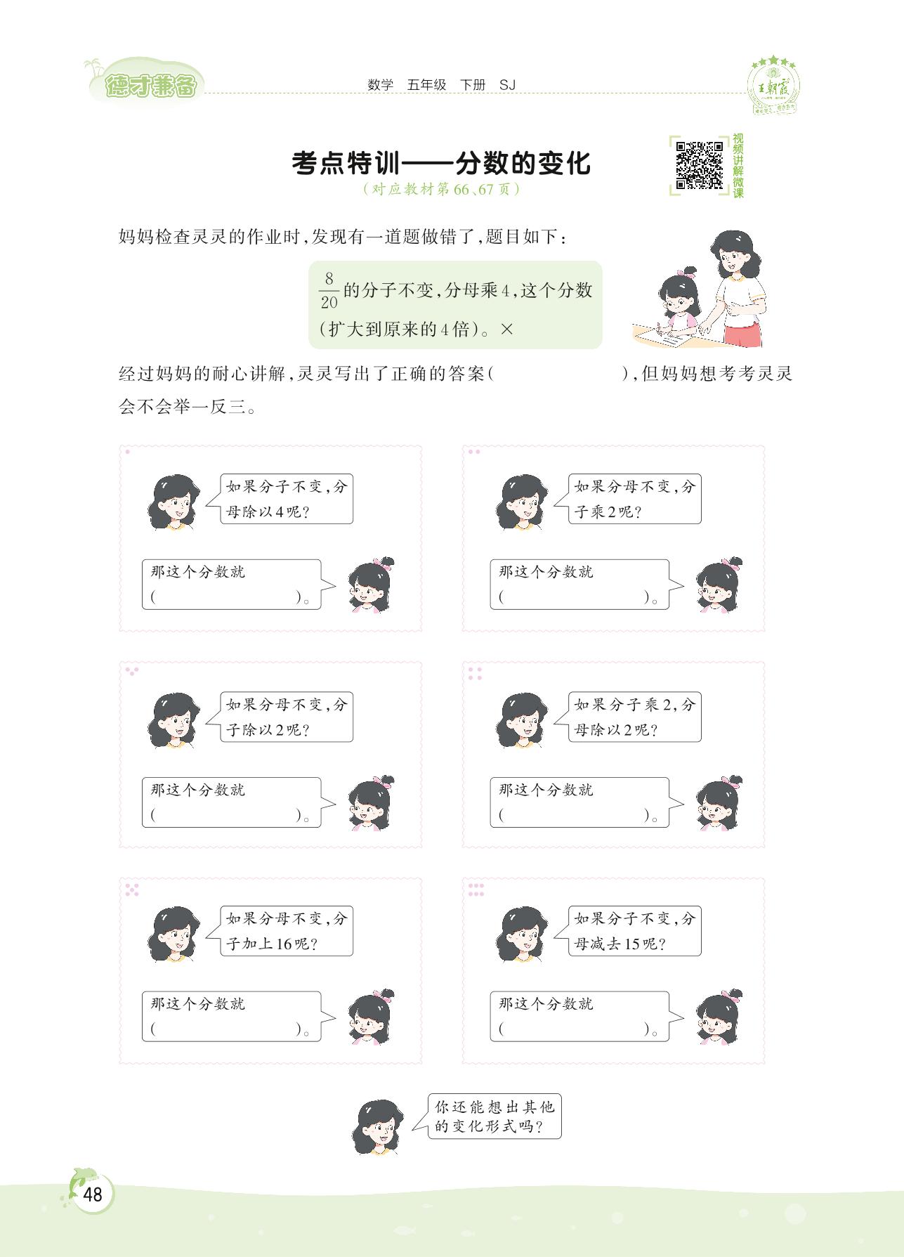 2022下册五年级数学苏教版 第四单元——考点特训 分数的变化