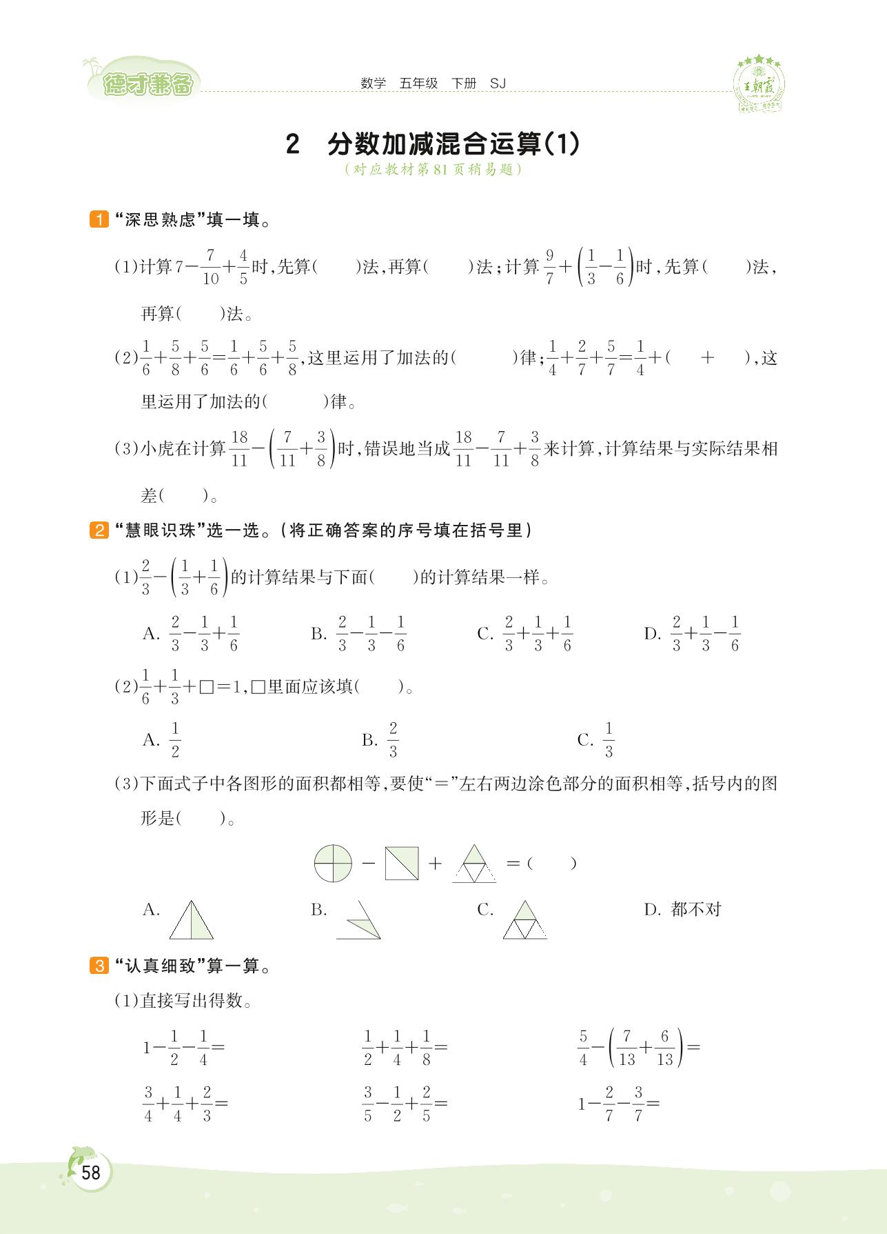 2022下册五年级数学苏教版 第五单元——2 分数加减混合运算(1)