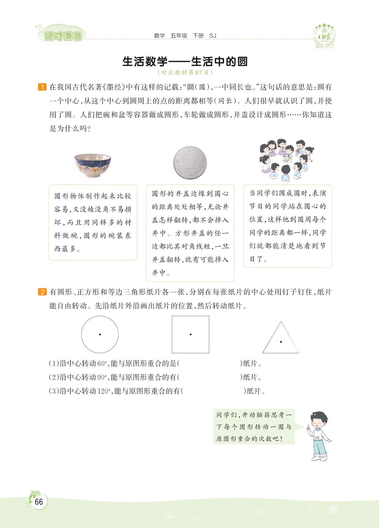 2022下册五年级数学苏教版 第六单元——生活数学 生活中的圆