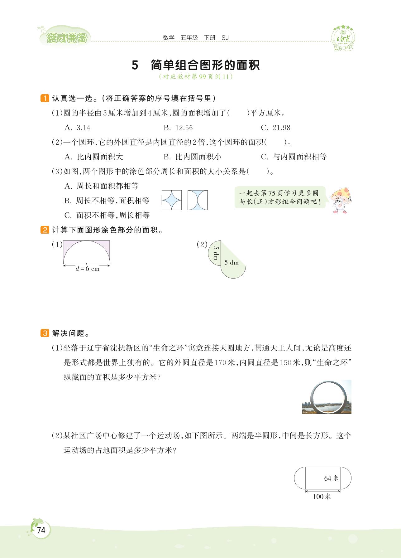 2022下册五年级数学苏教版 第六单元——5 简单组合图形的面积