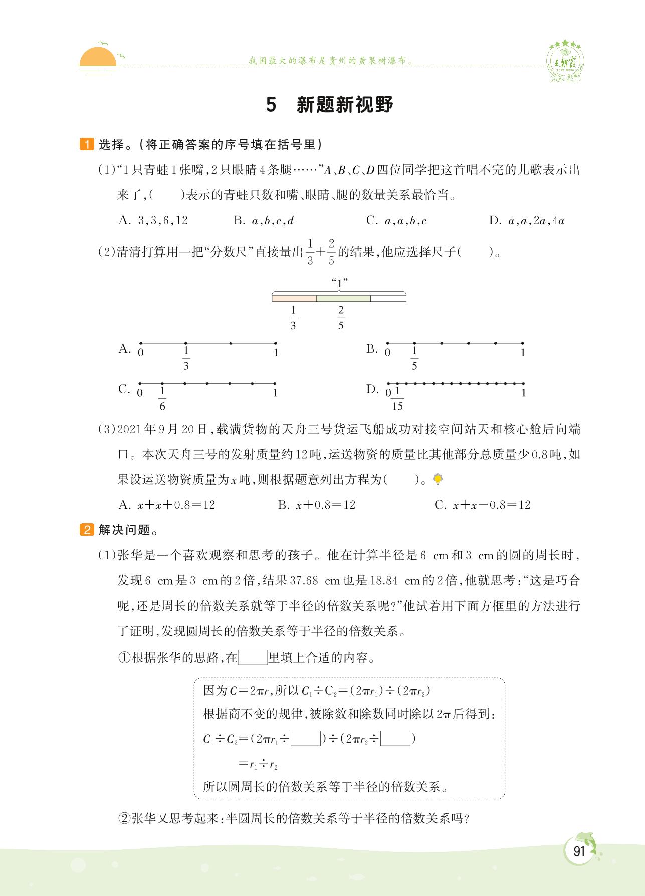 2022下册五年级数学苏教版 第八单元——5 新题新视野