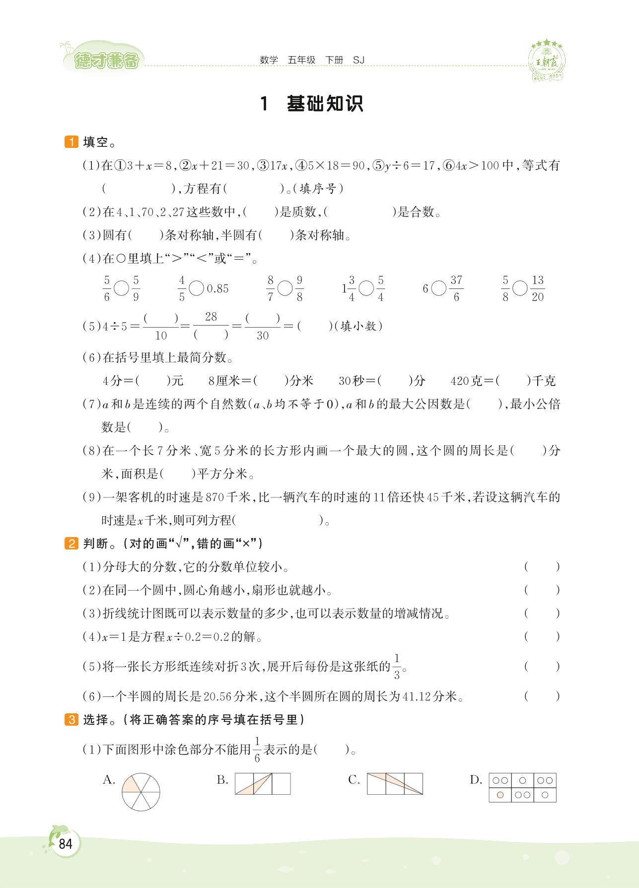 2022下册五年级数学苏教版 第八单元——1 基础知识