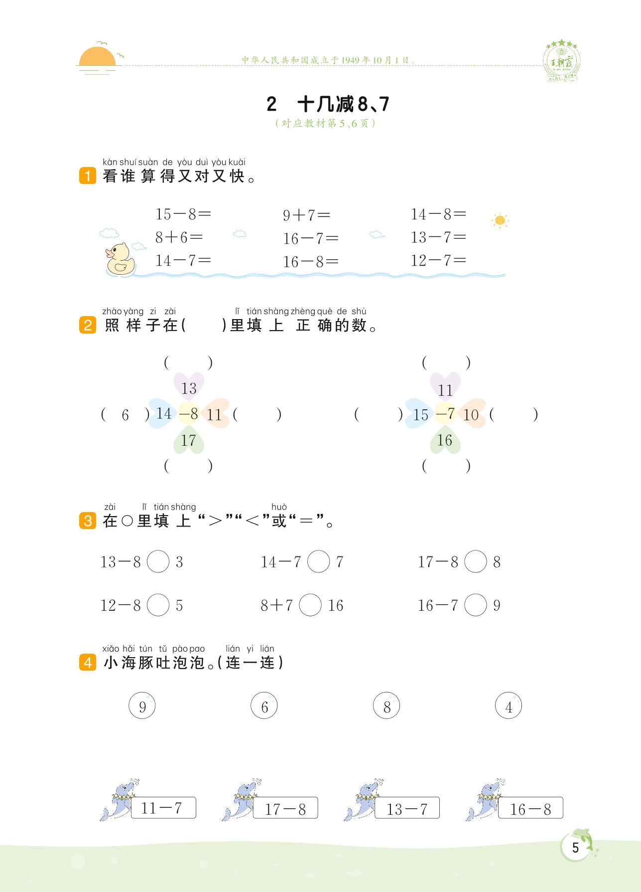 2022下册一年级数学苏教版 第一单元——2 十几减8、7