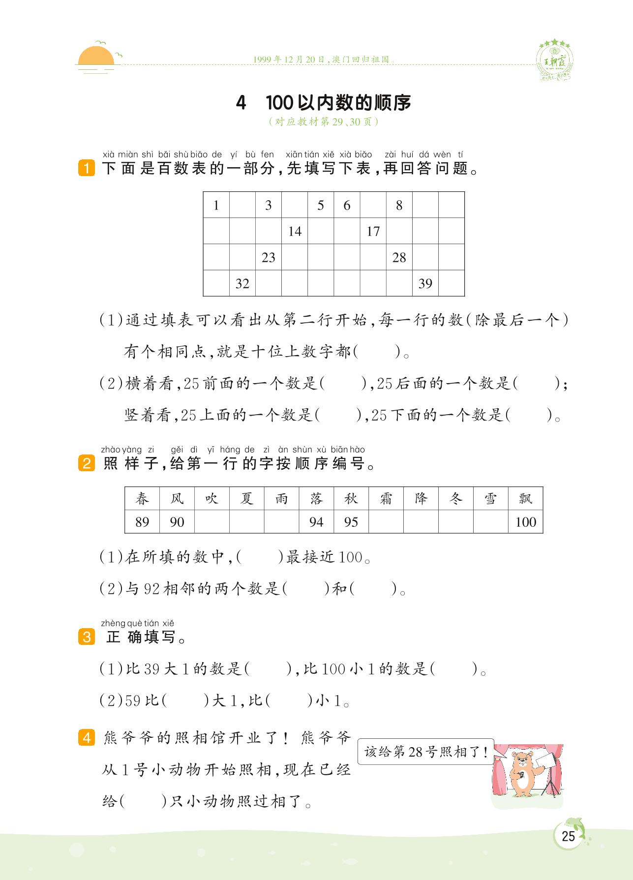 2022下册一年级数学苏教版 第三单元——4 100以内数的顺序