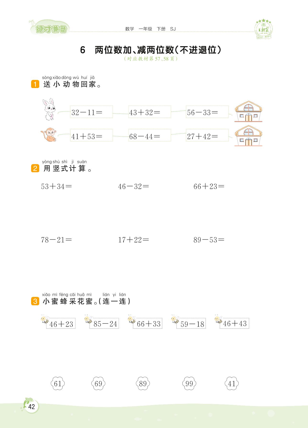 2022下册一年级数学苏教版 第四单元——6 两位数加、减两位数(不进退位)