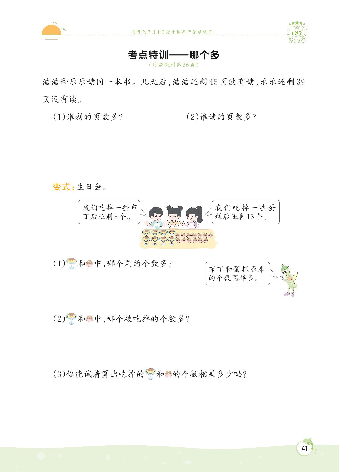 2022下册一年级数学苏教版 第四单元——考点特训 哪个多