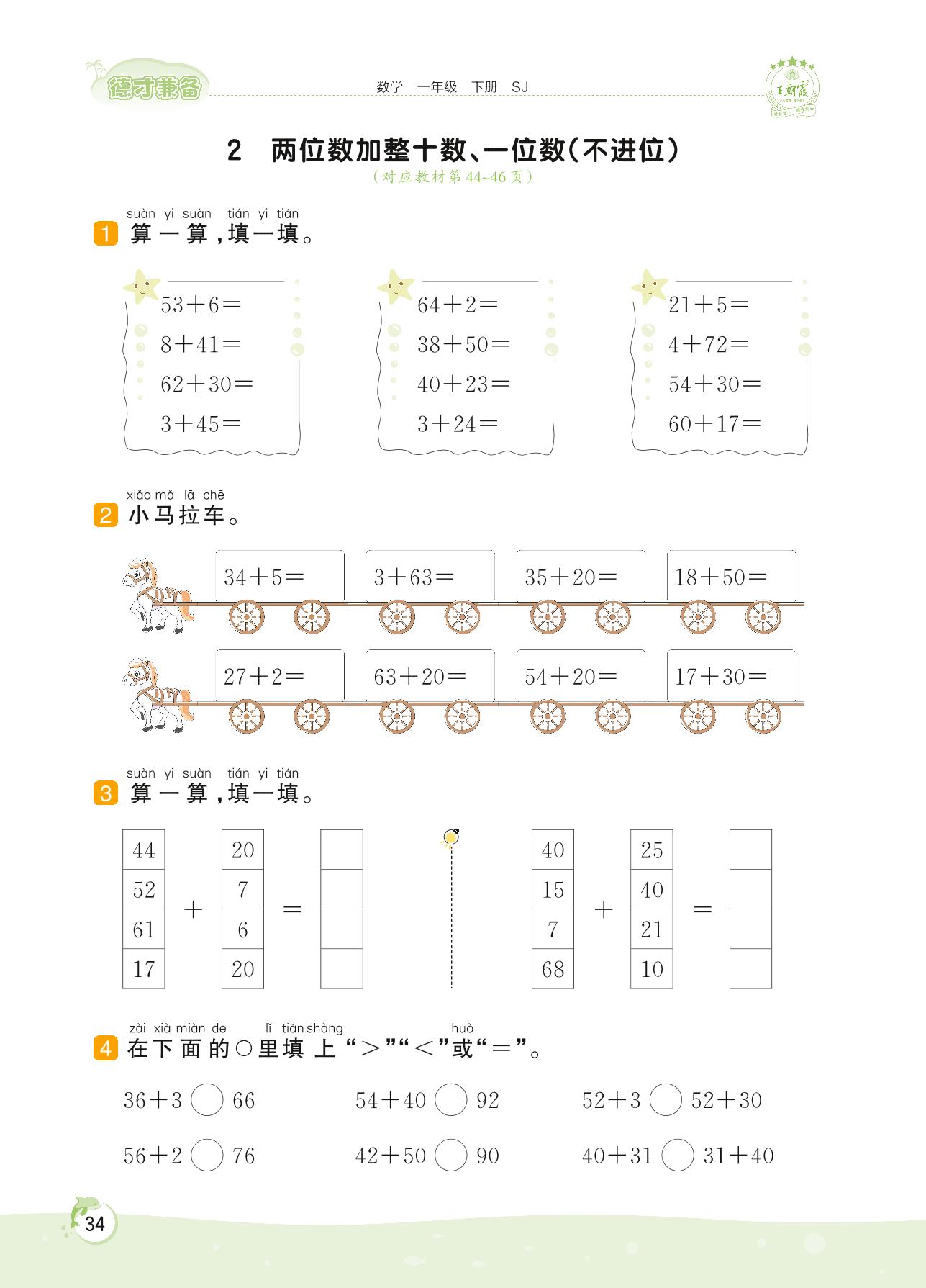 2022下册一年级数学苏教版 第四单元——2 两位数加整十数、一位数(不进位)