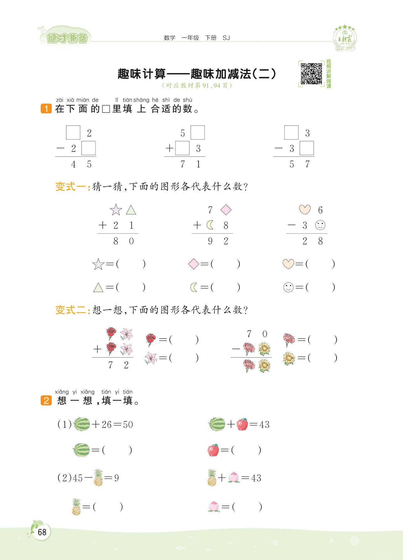 2022下册一年级数学苏教版 第六单元——趣味计算 趣味加减法(二)