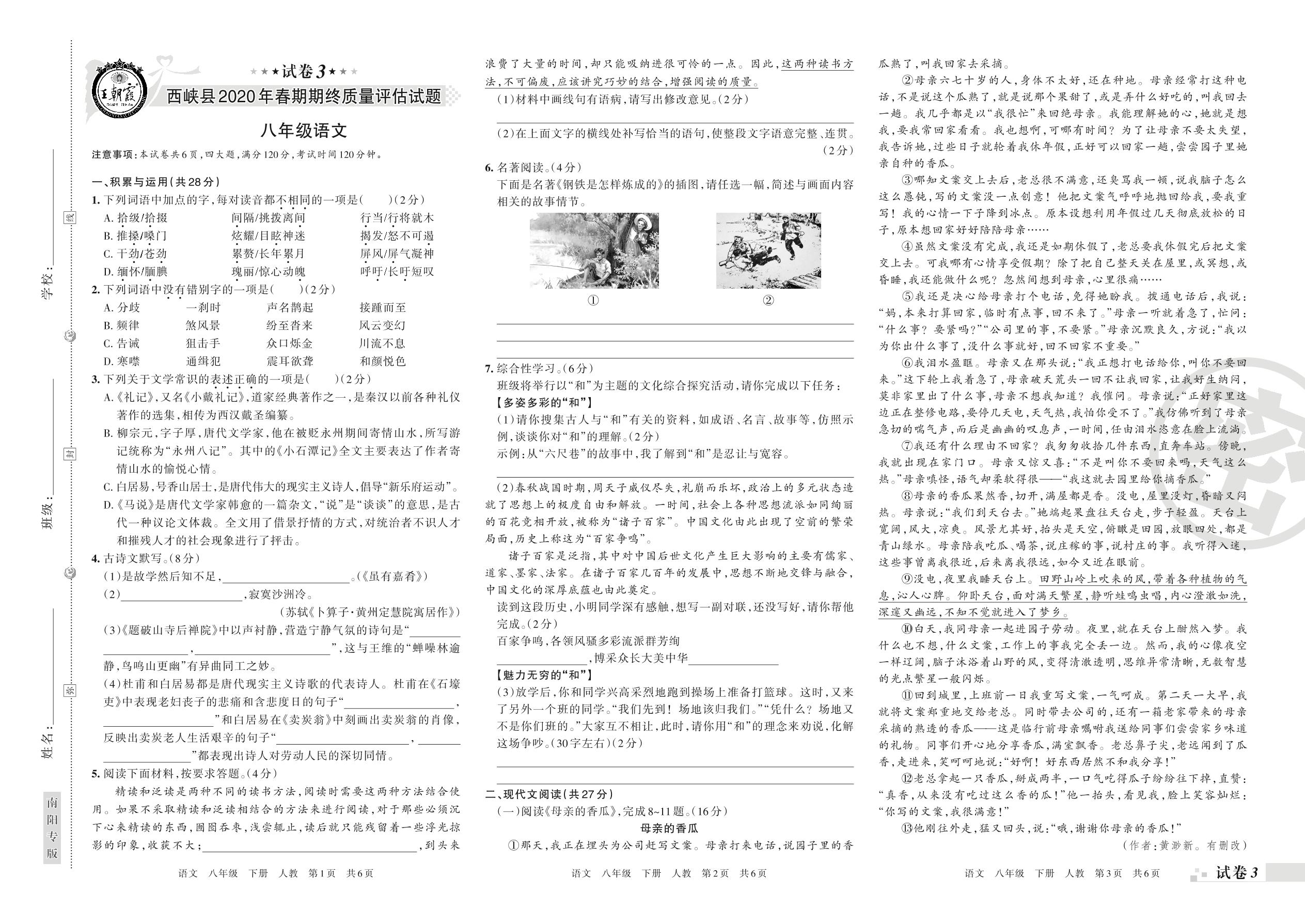 2019-2020学年第二学期南阳市西峡县八年级语文试卷(人教版)【3】