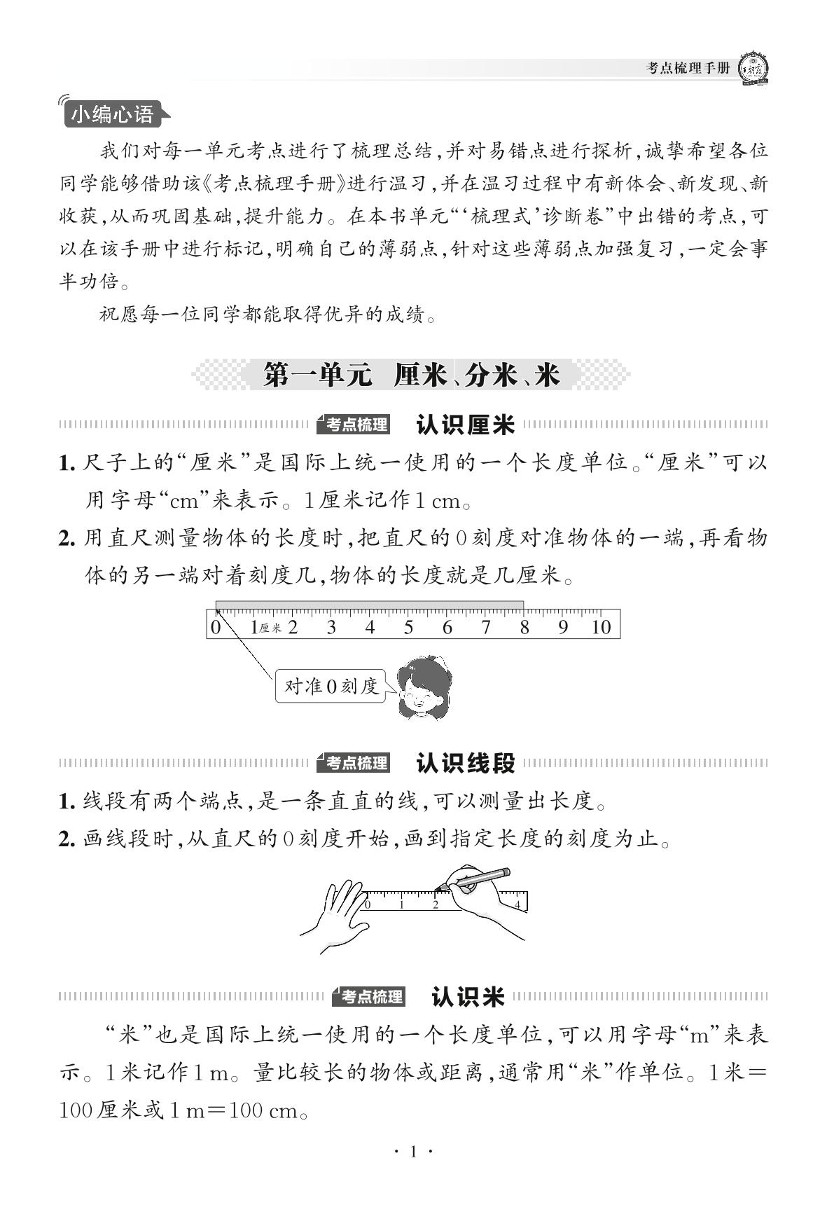 2022下册一年级数学冀教版 考点梳理手册