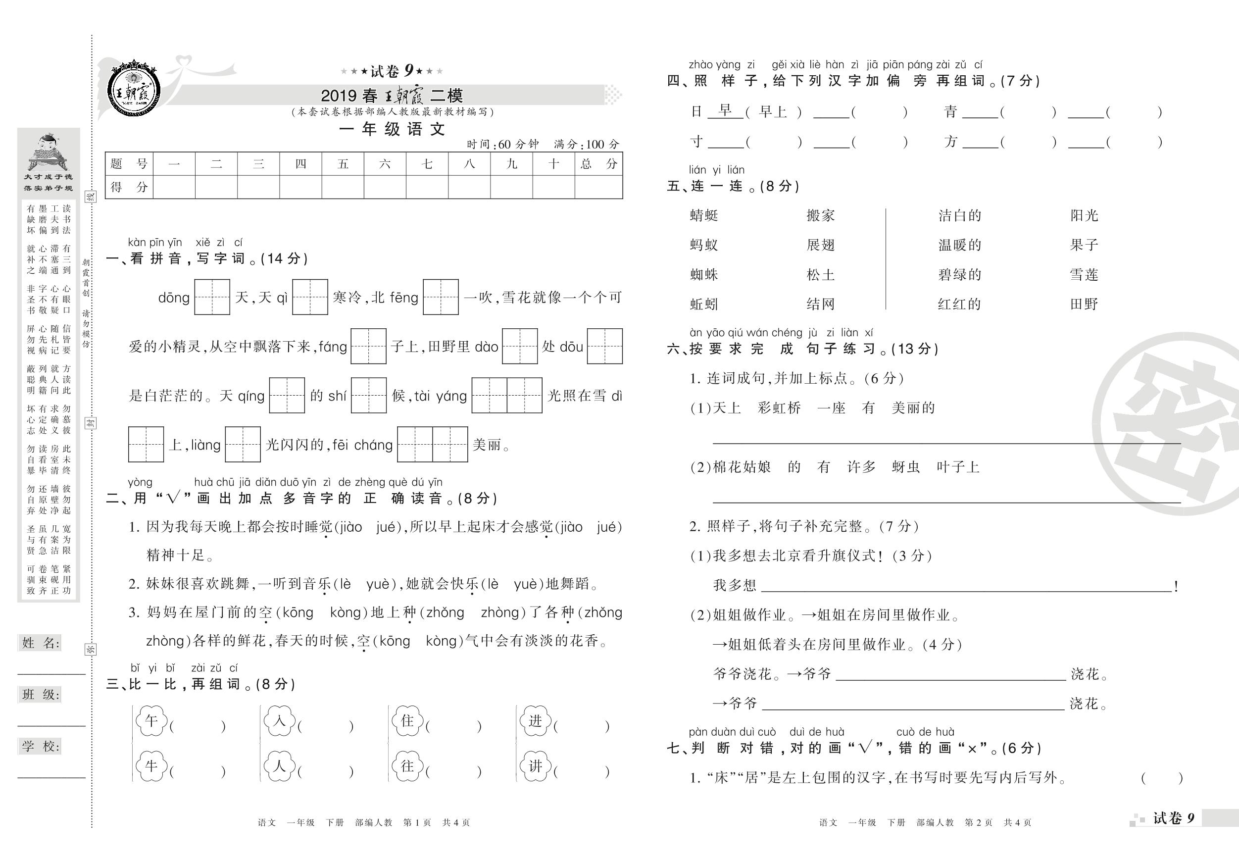 王朝霞期末模拟卷一年级下册语文(人教版)_R210731182926【9】