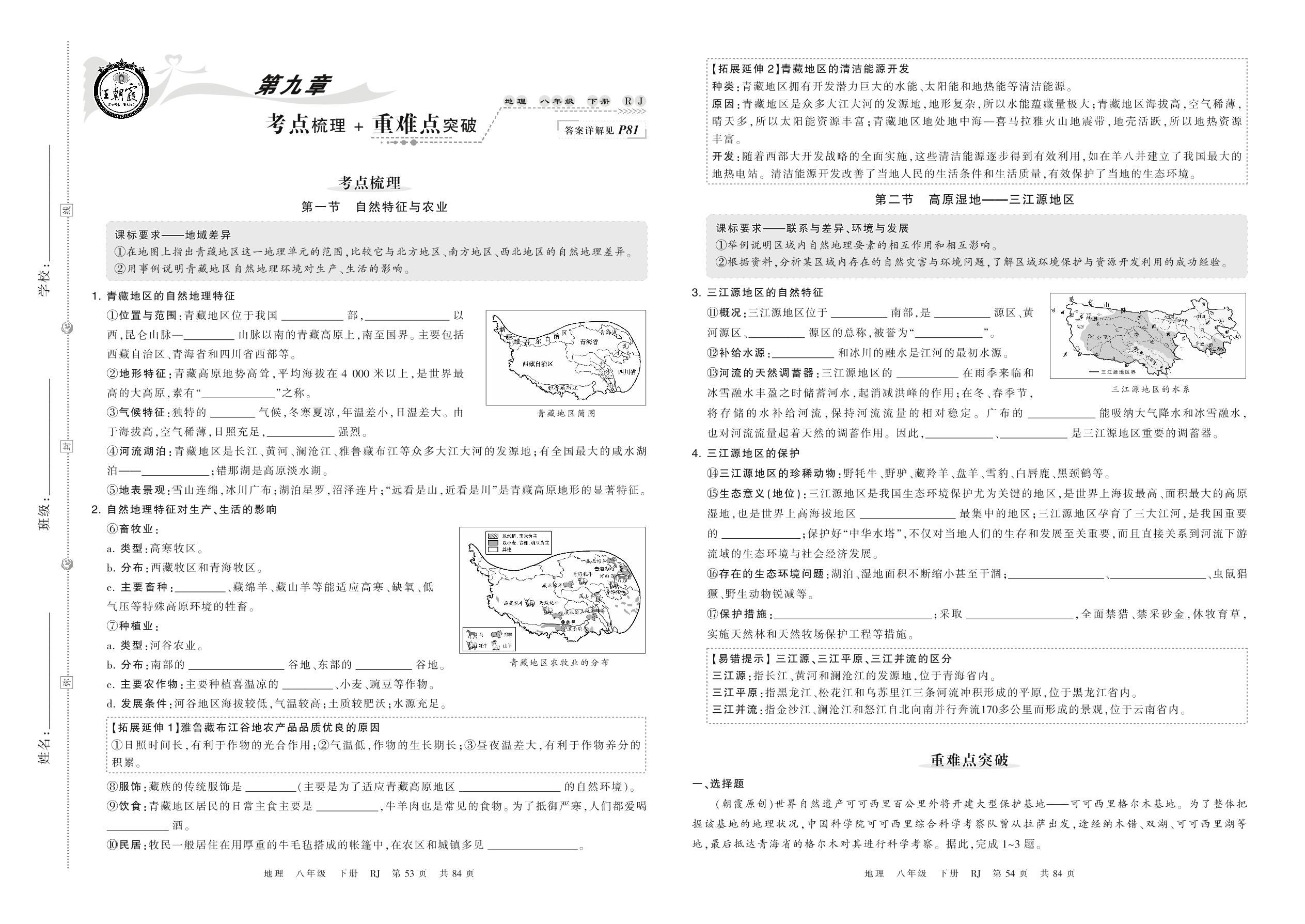 2022下册八年级地理人教版 第九章 考点梳理+重难点突破
