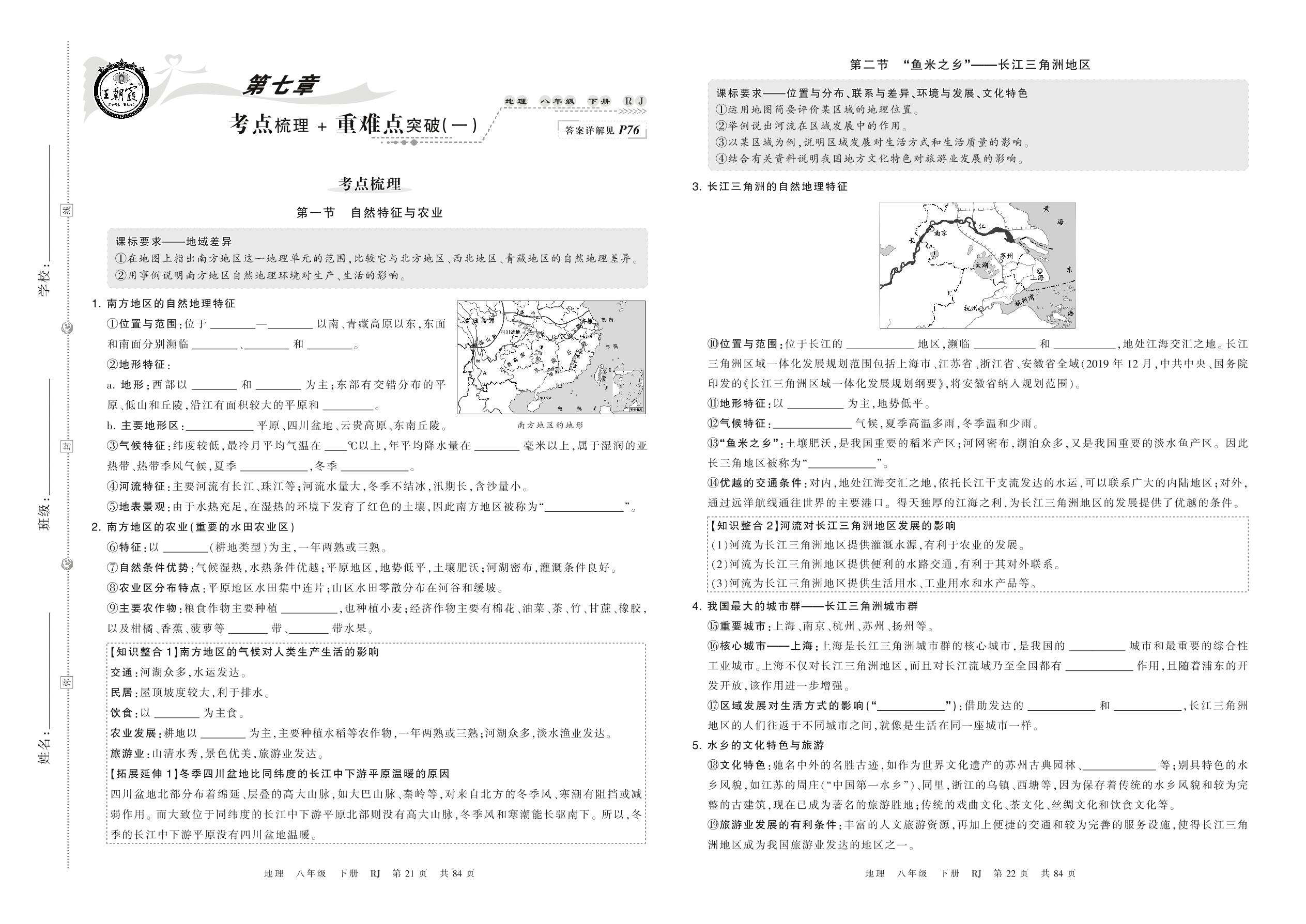 2022下册八年级地理人教版 第七章 考点梳理+重难点突破(一)