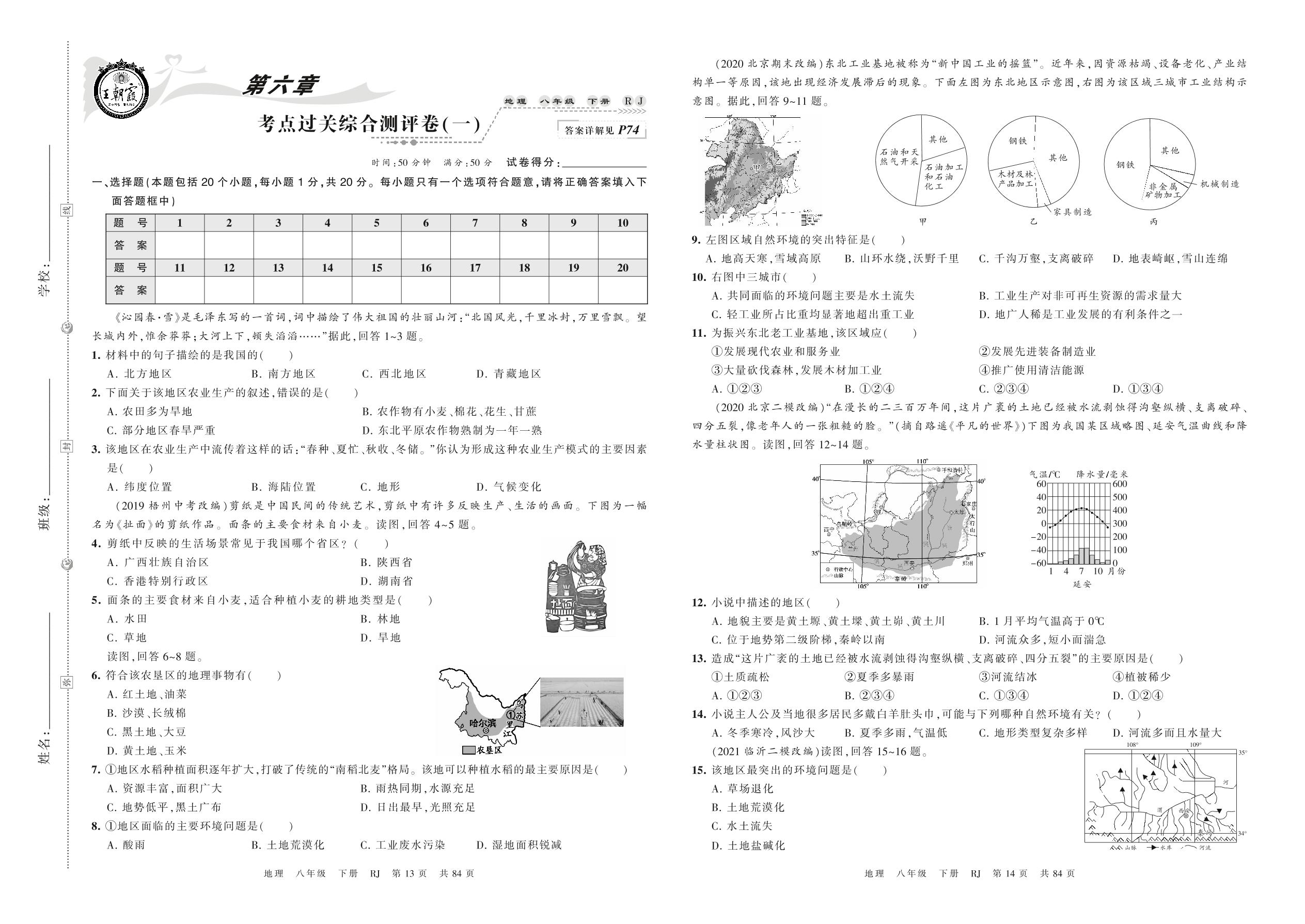 2022下册八年级地理人教版 第六章 考点过关综合测评卷(一)