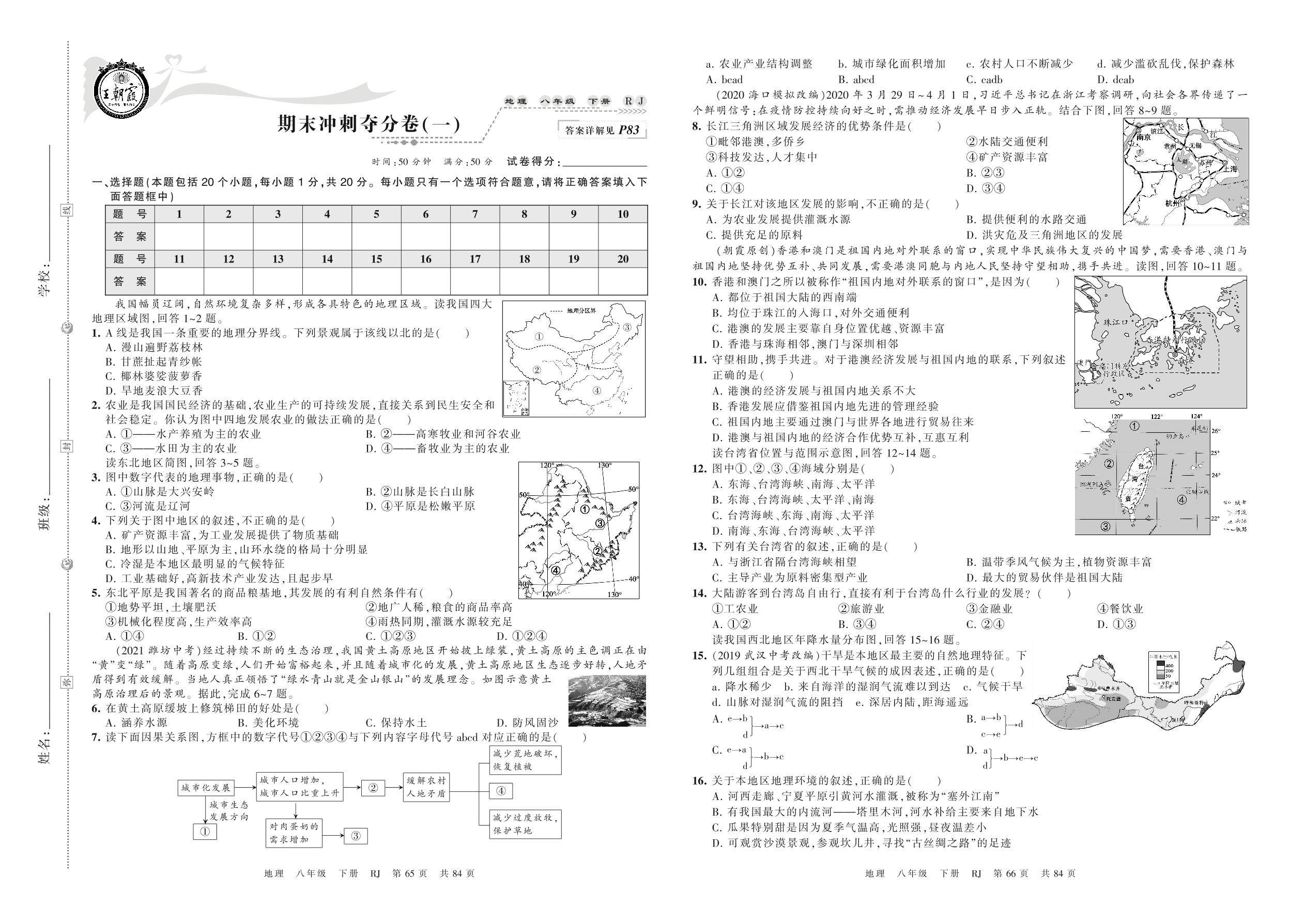 2022下册八年级地理人教版 期末冲刺夺分卷(一)