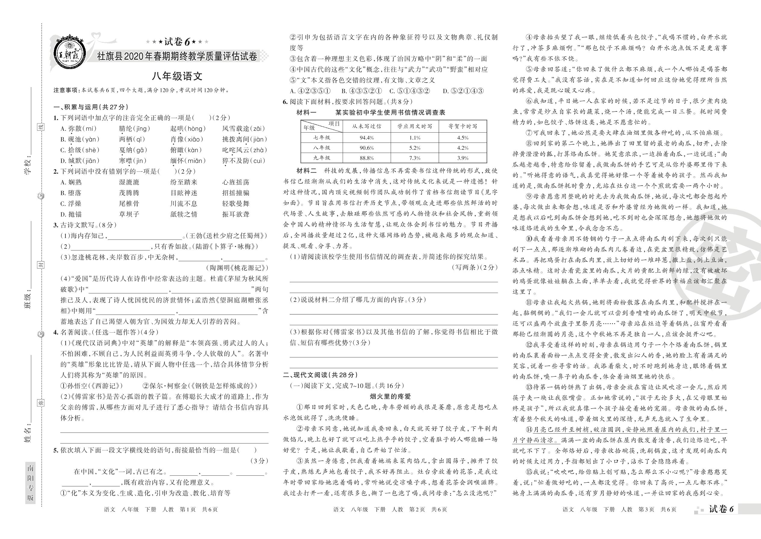 2019-2020学年第二学期南阳市社旗县八年级语文试卷(人教版)【6】