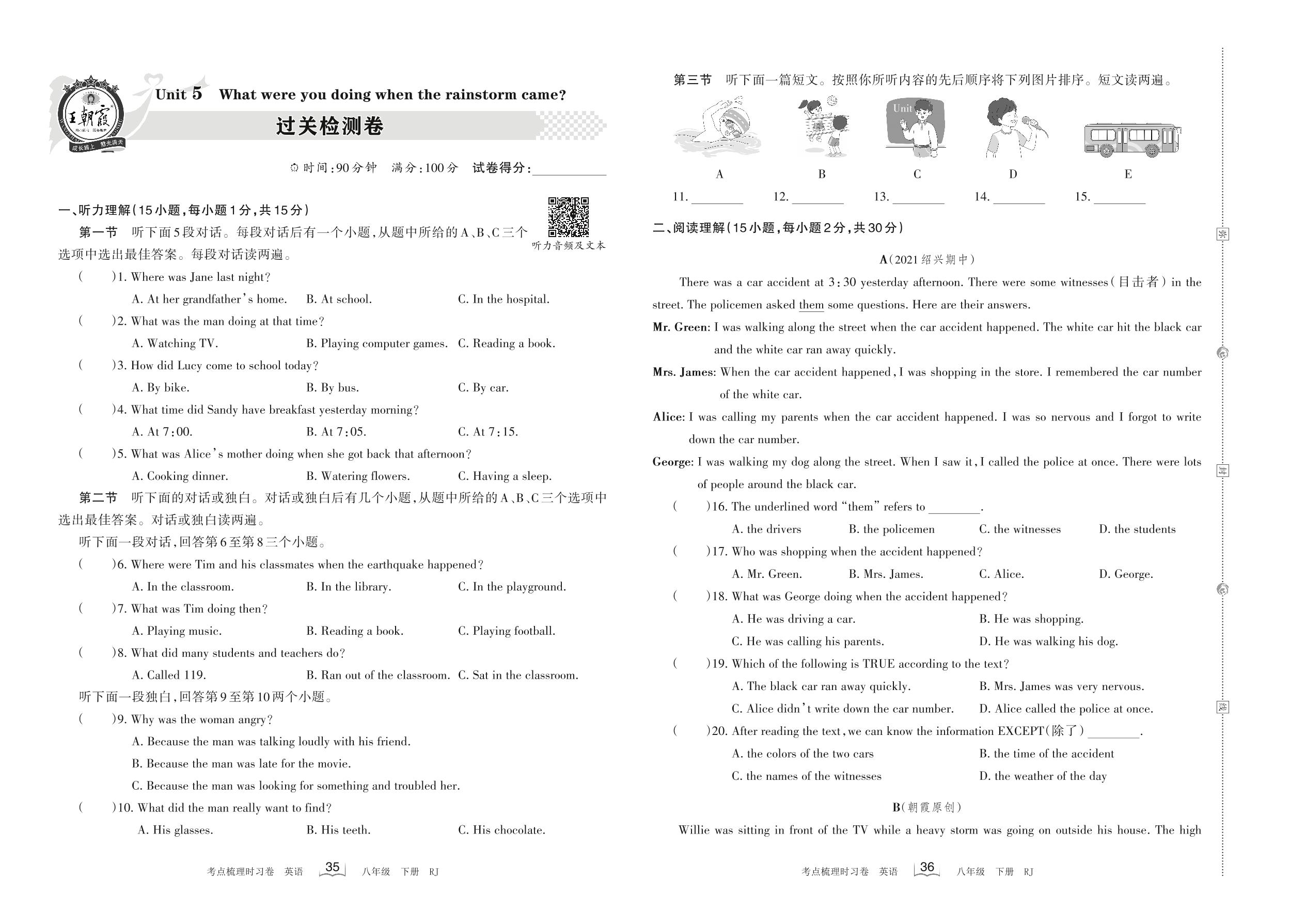 2022下册八年级英语人教版 Unit 5 过关检测卷