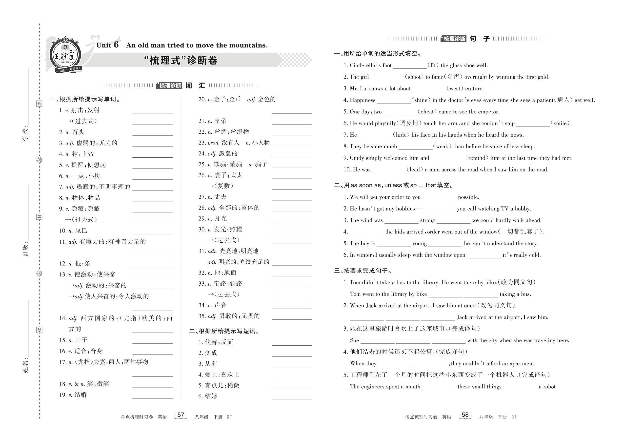 2022下册八年级英语人教版 Unit 6 “梳理式”诊断卷