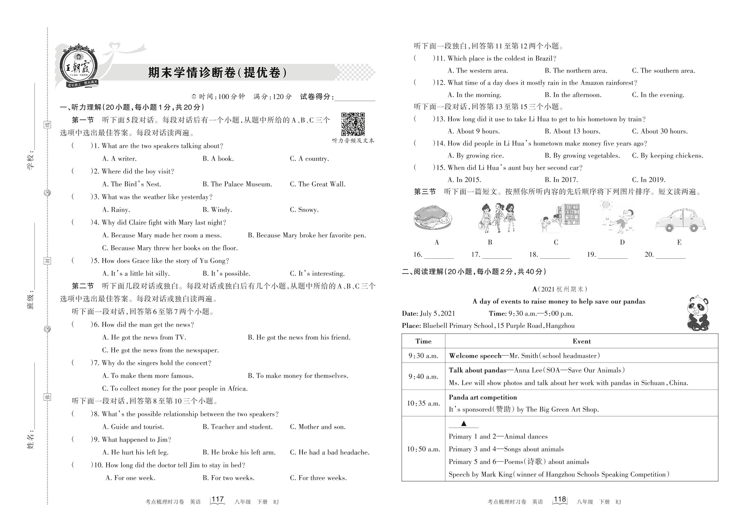 八年级英语人教版下册期末卷