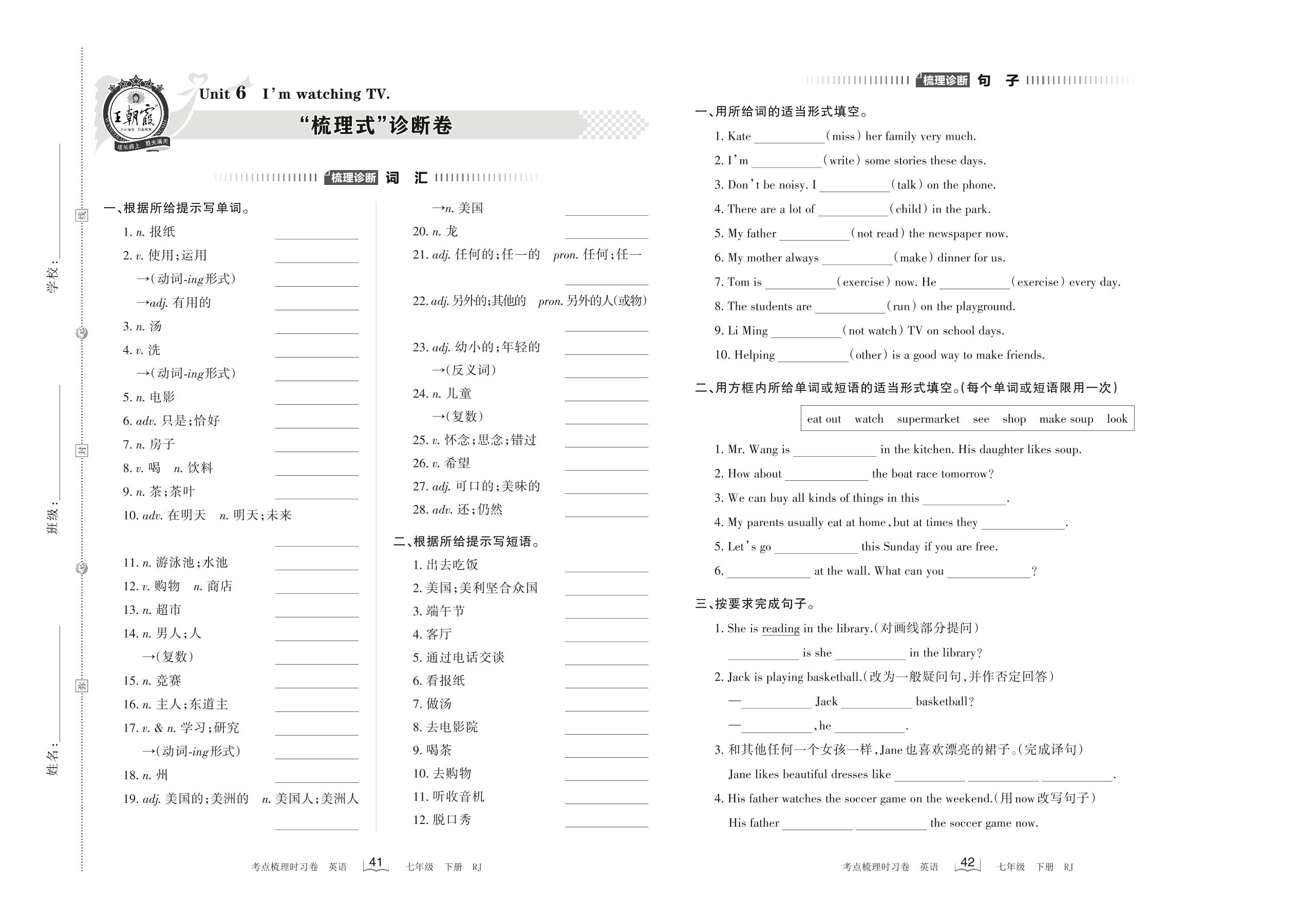 2022下册七年级英语人教版 Unit 6 “梳理式”诊断卷