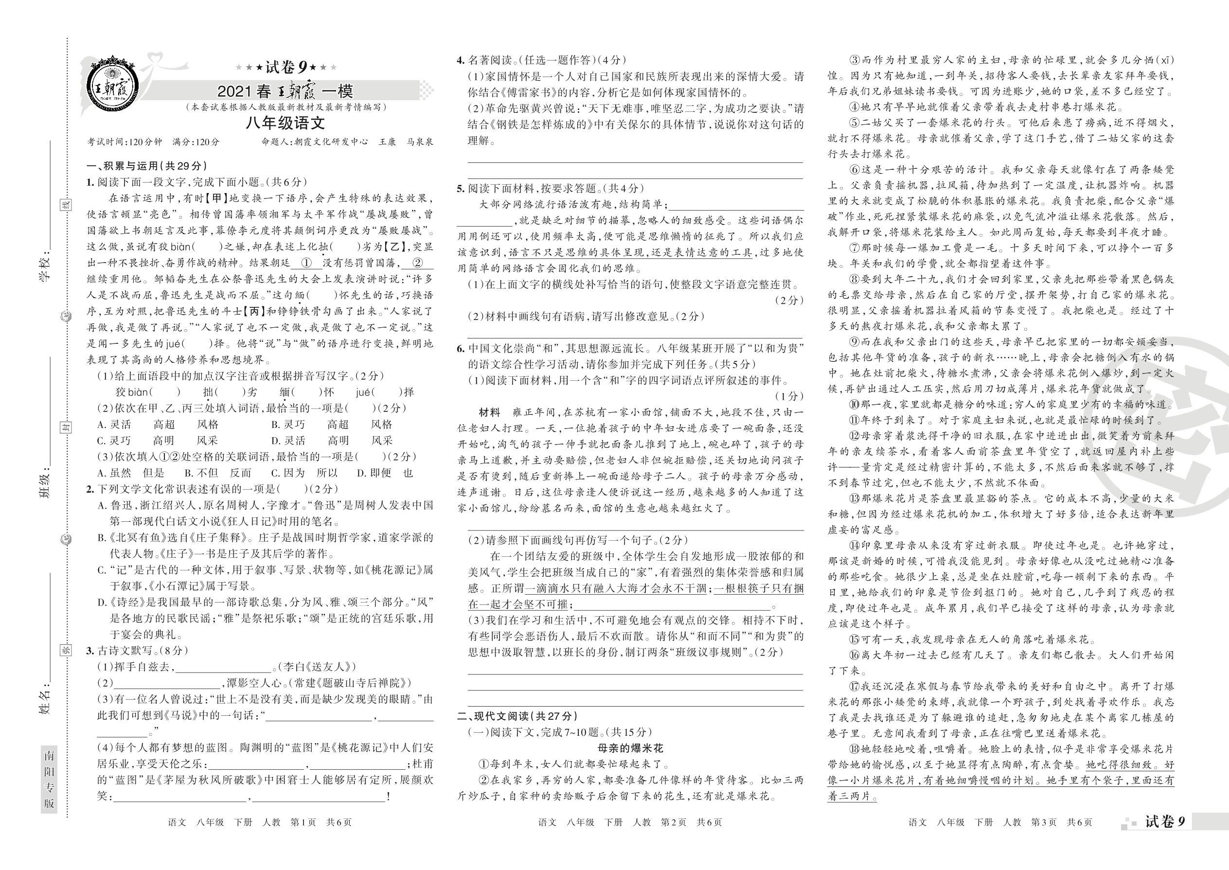 王朝霞期末模拟卷八年级下册语文(人教版)_R2108021048【9】