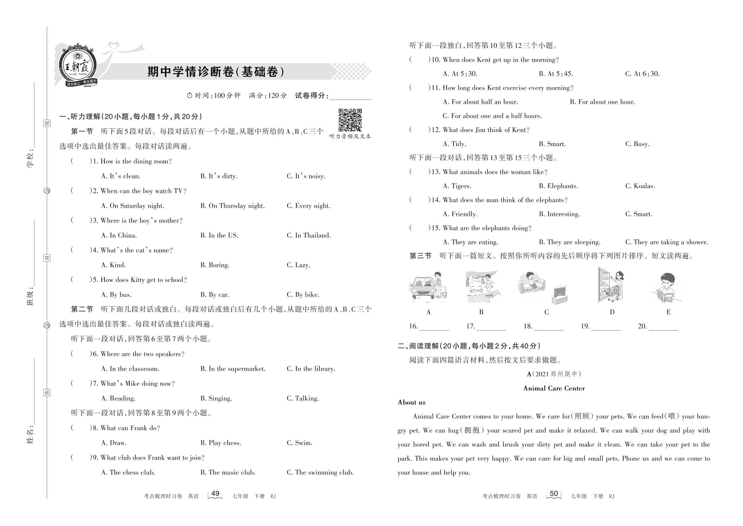 2022下册七年级英语人教版 期中学情诊断卷(基础卷)