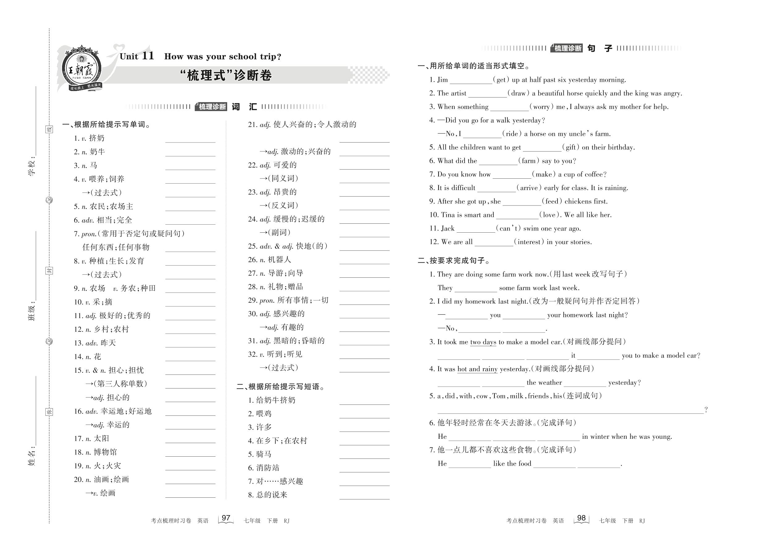 2022下册七年级英语人教版 Unit 11 “梳理式”诊断卷